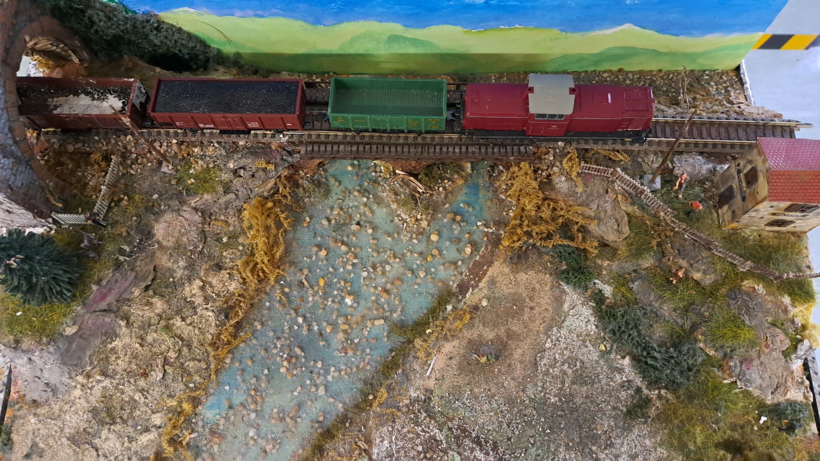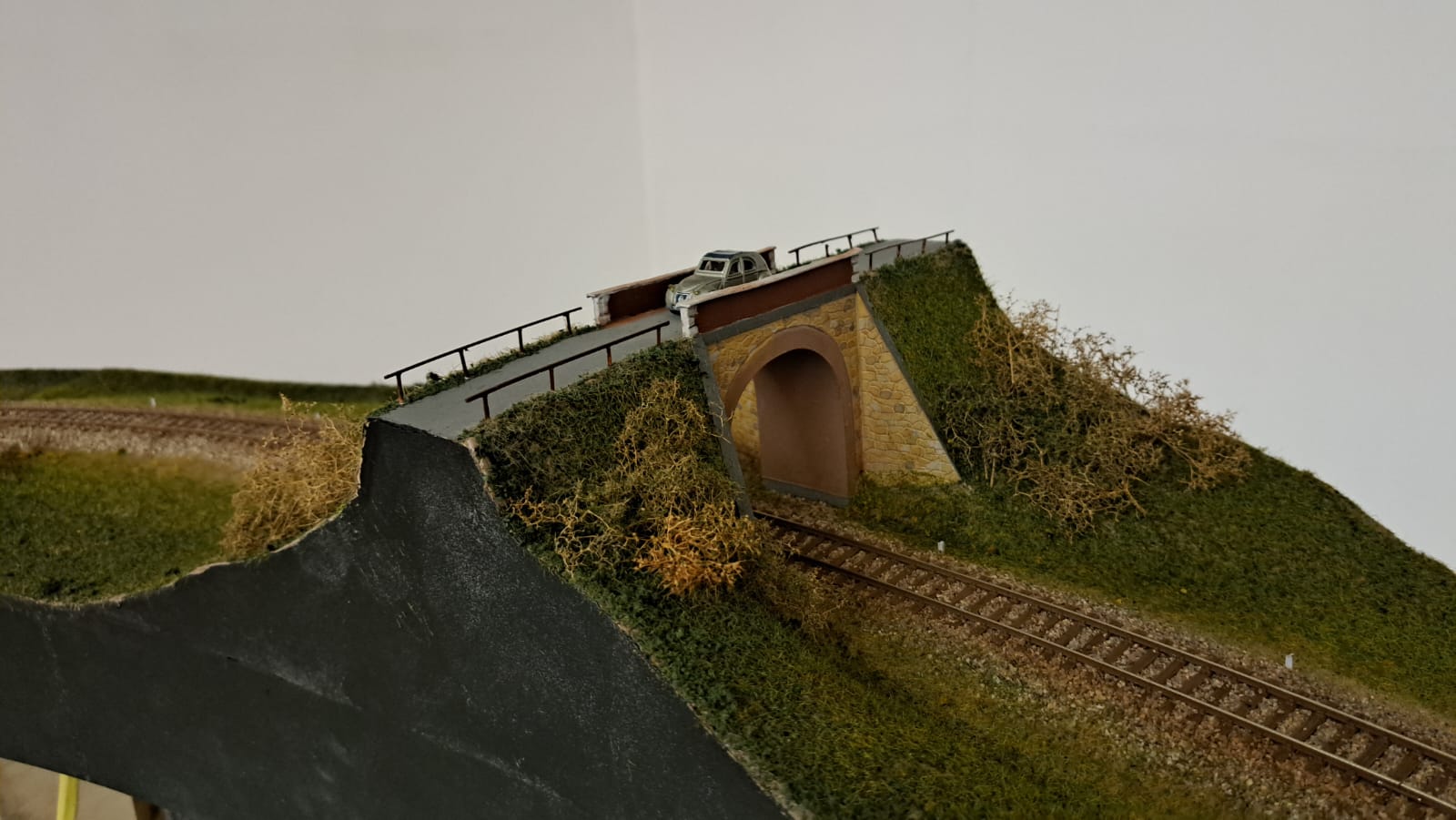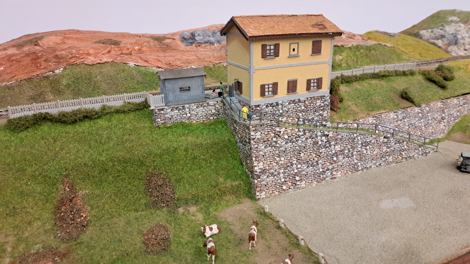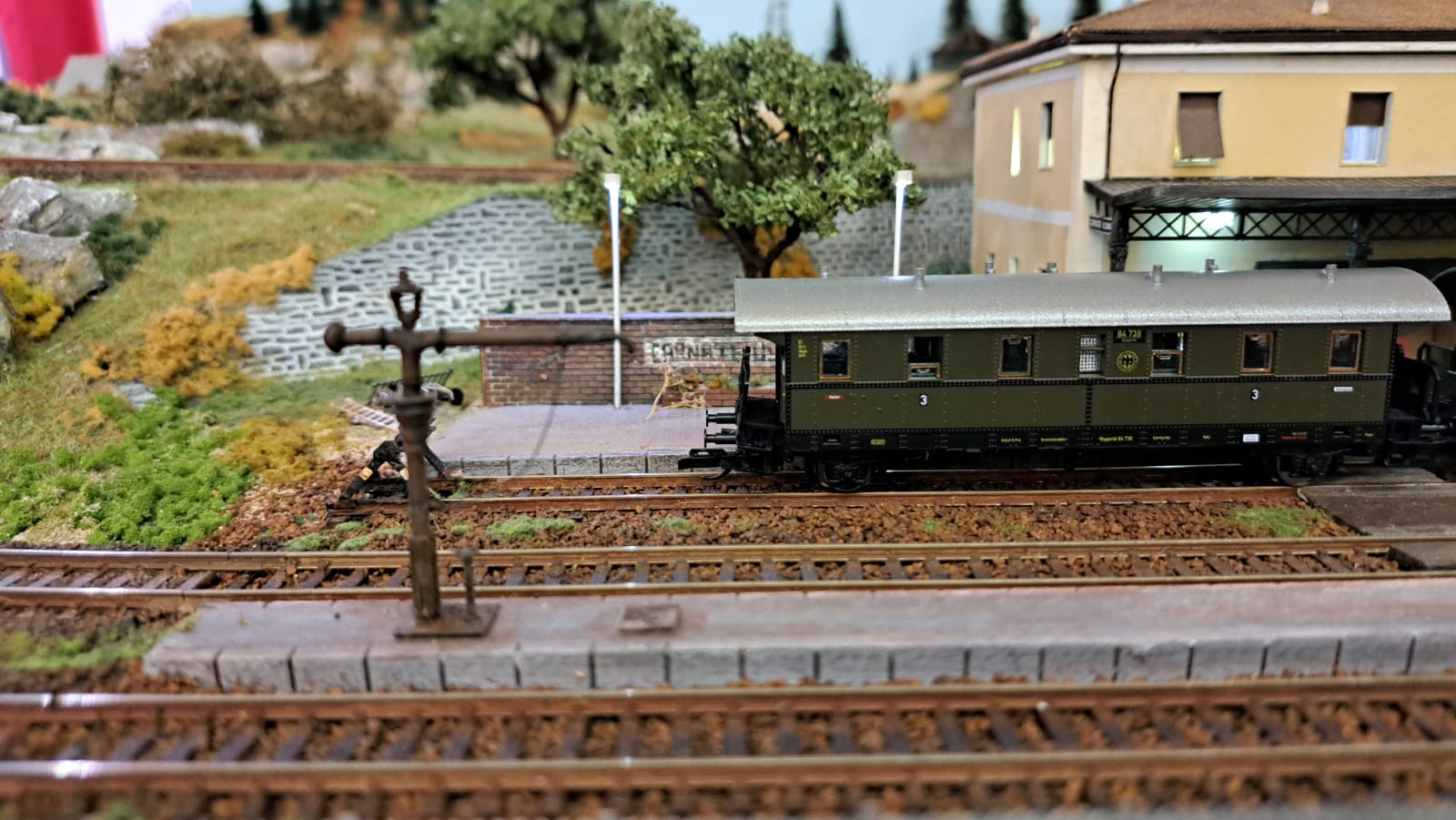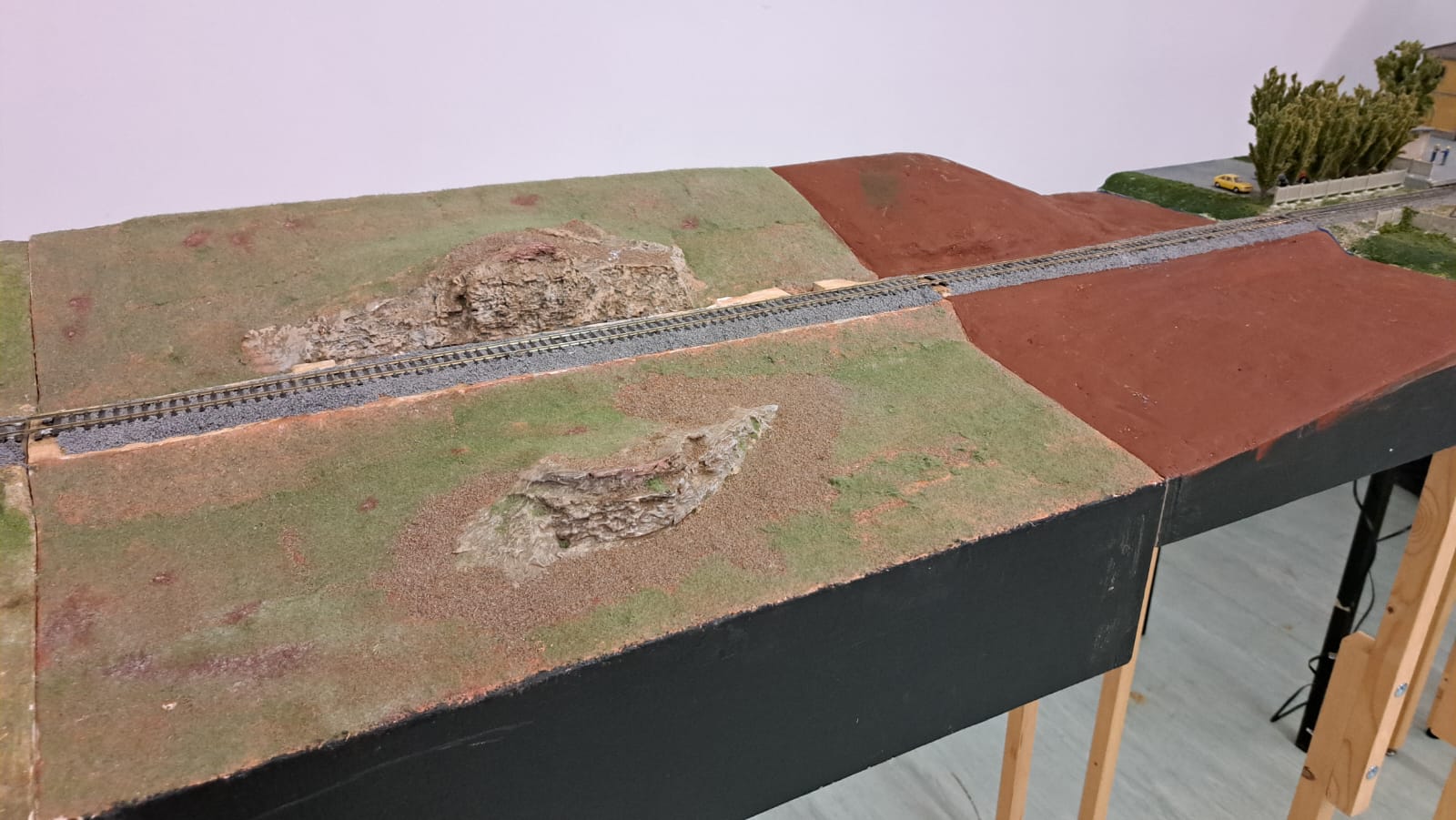 Ed in azione... Riparazione traversa limite di stazionamento nella parte alta del plastico di Carnate...