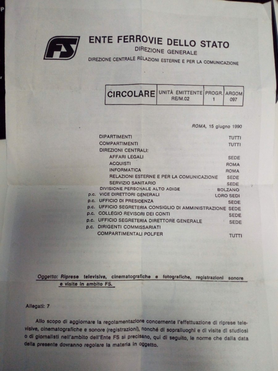 Poi è uscita una circolare delle Ferrovie che diceva che si poteva fotografare liberamente purchè ci si trovasse in un posto accessibile al pubblico, che non si usassero postazioni fisse tipo cavalletto, che non ci si facesse aiutare da personale ferroviario e che non si intralciasse la circolazione.