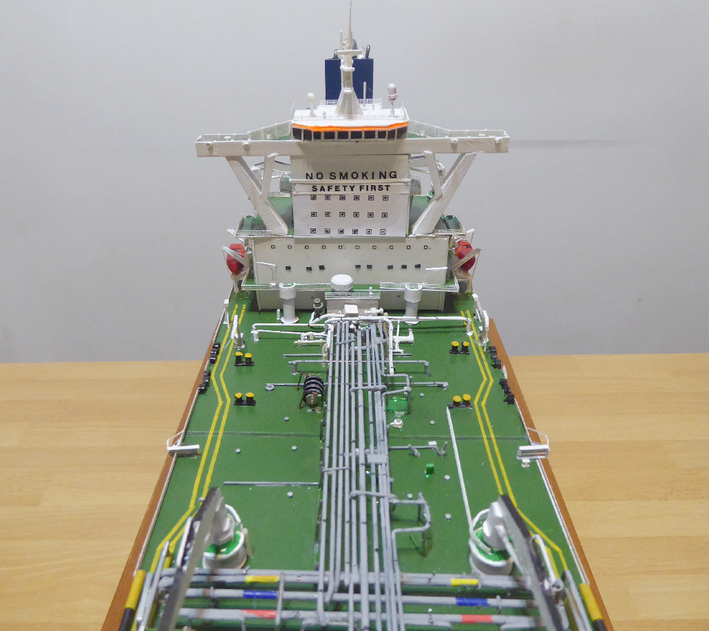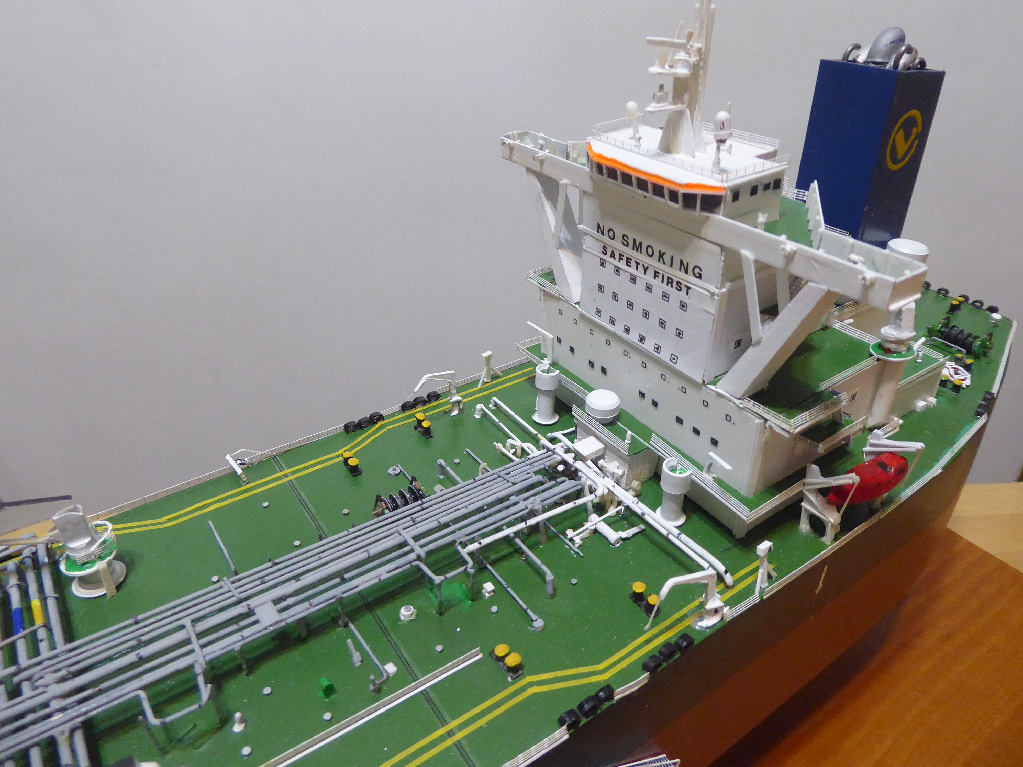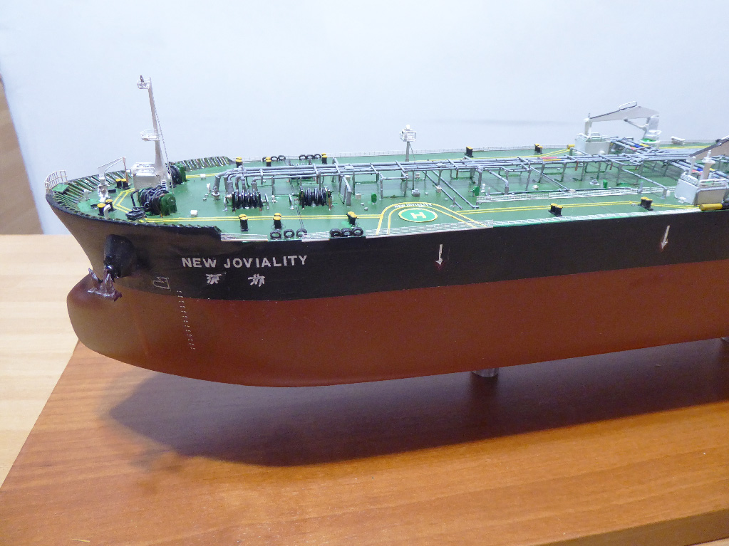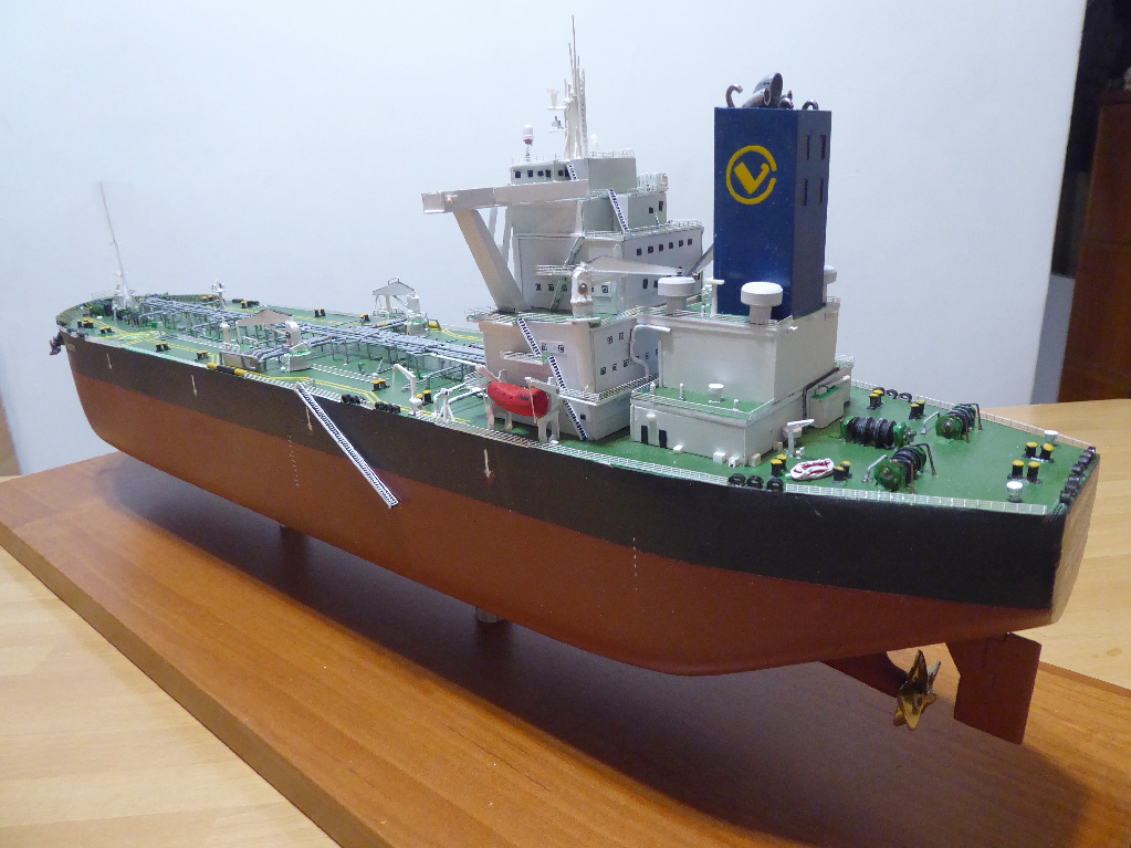 Uno dei miei più grandi desideri , sin da bambino , è sempre stato la costruzione di una superpetroliera, le osservavo al passaggio di fronte casa mia , a Venezia, ne rimanevo incantato, sebbene fossero più piccole di questa che ho realizzato, le eliche facevano tremare letteralmente i vetri delle finestre quando entravano per manutenzione nel cantiere all'Arsenale; avevo trovato finalmente ottime foto, e la documentazione a riguardo è sempre molto difficile di questi soggetti, che tra l'altro nel modellismo sono assai scarsamente considerati ; attualmente so anche rilevarne la posizione esatta di questa immensa nave, esiste un sito apposito dove viene indicato il traffico di qualsiasi soggetto ; questa super petroliera è lunga 330 m. con una larghezza di 60 m. e la stazza è di circa 166.630 tonnellate..una cosa spaventosa insomma ed è ancorata proprio sullo stretto Hormuz causa il conflitto che sappiamo, proviene di base da Hong Kong e sul modello lo possiamo vedere avendo anche riprodotto il suo codice IMO sulla poppa che equivale alla sua registrazione internazionale marittima di riconoscimento . Il mio modello è lungo 55 cm , siamo sulla scala 1:600, ne risulta un modello imponente che non può essere compreso dalle foto, ma ho anche una stranezza come sempre, cioè una volta realizzato lo devo fare anche in scale minori..non so perchè ma è semre stata una mia costante strana..devo farlo ancora più piccolo ad ogni costo :D :D , anzi di essa ho anche esagerato, non mi bastava la 1:600 , sono sceso alla 1 :3000 ed infine alla tremenda scala 1:125.000 !! :D :D Si ..la matita è ritornata !! [246] [246] Naturalmente non esistono decals per le scritte, le ho realizzate pazientemente , carattere dopo carattere singolarmente , con i trasferibili a secco R41 che ne conservo una bella quantità ! Tubazioni in acciaio .