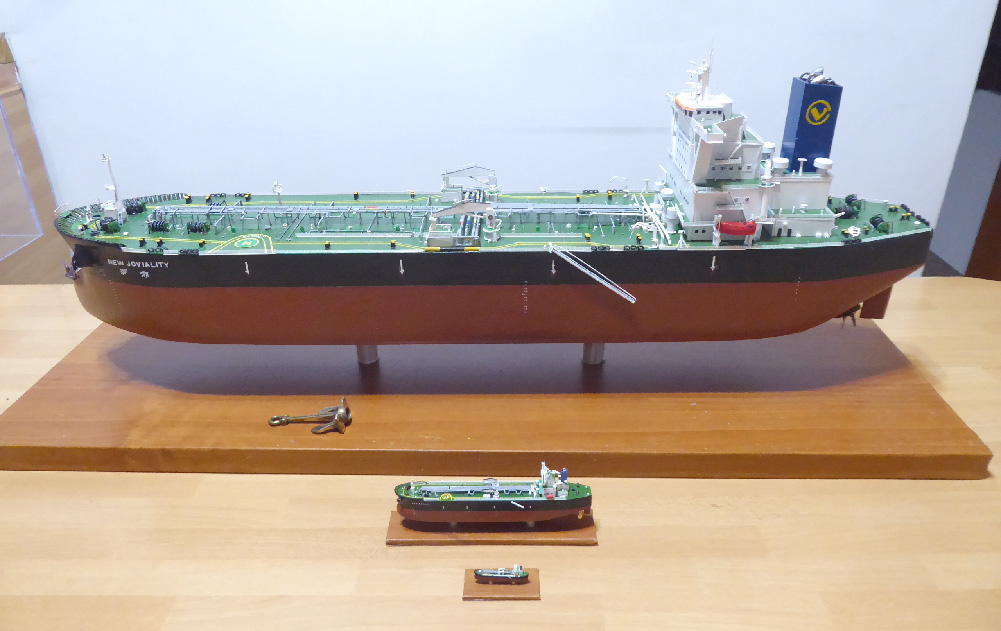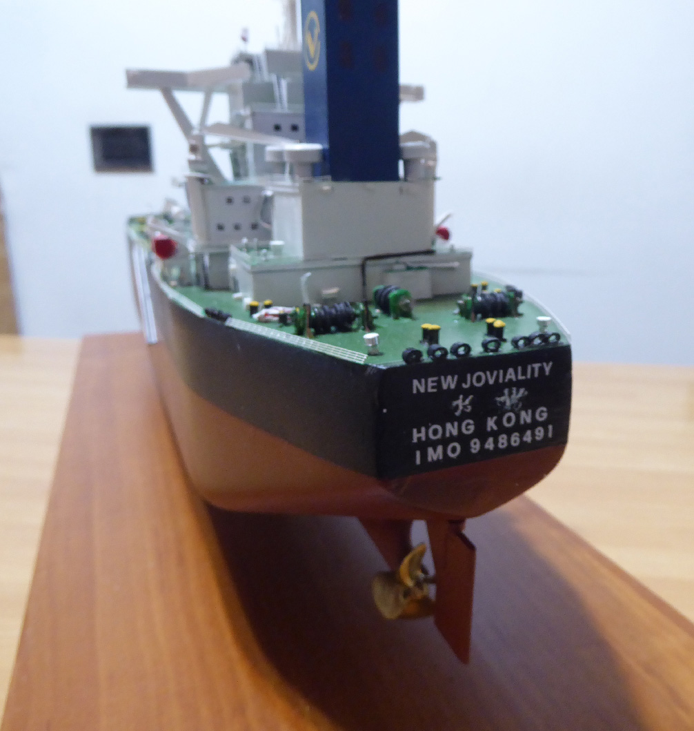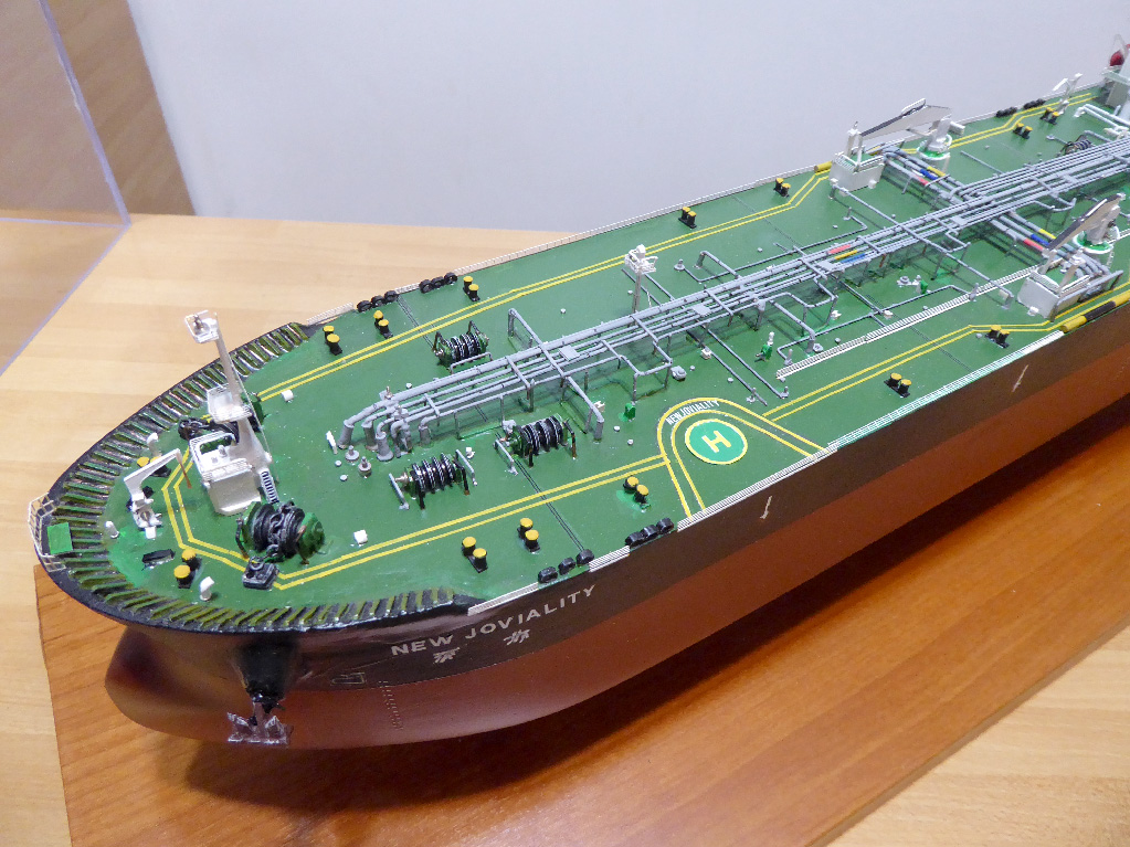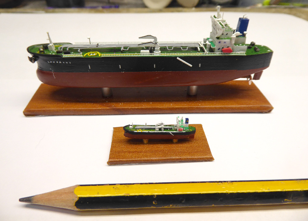 Uno dei miei più grandi desideri , sin da bambino , è sempre stato la costruzione di una superpetroliera, le osservavo al passaggio di fronte casa mia , a Venezia, ne rimanevo incantato, sebbene fossero più piccole di questa che ho realizzato, le eliche facevano tremare letteralmente i vetri delle finestre quando entravano per manutenzione nel cantiere all'Arsenale; avevo trovato finalmente ottime foto, e la documentazione a riguardo è sempre molto difficile di questi soggetti, che tra l'altro nel modellismo sono assai scarsamente considerati ; attualmente so anche rilevarne la posizione esatta di questa immensa nave, esiste un sito apposito dove viene indicato il traffico di qualsiasi soggetto ; questa super petroliera è lunga 330 m. con una larghezza di 60 m. e la stazza è di circa 166.630 tonnellate..una cosa spaventosa insomma ed è ancorata proprio sullo stretto Hormuz causa il conflitto che sappiamo, proviene di base da Hong Kong e sul modello lo possiamo vedere avendo anche riprodotto il suo codice IMO sulla poppa che equivale alla sua registrazione internazionale marittima di riconoscimento . Il mio modello è lungo 55 cm , siamo sulla scala 1:600, ne risulta un modello imponente che non può essere compreso dalle foto, ma ho anche una stranezza come sempre, cioè una volta realizzato lo devo fare anche in scale minori..non so perchè ma è semre stata una mia costante strana..devo farlo ancora più piccolo ad ogni costo :D :D , anzi di essa ho anche esagerato, non mi bastava la 1:600 , sono sceso alla 1 :3000 ed infine alla tremenda scala 1:125.000 !! :D :D Si ..la matita è ritornata !! [246] [246] Naturalmente non esistono decals per le scritte, le ho realizzate pazientemente , carattere dopo carattere singolarmente , con i trasferibili a secco R41 che ne conservo una bella quantità ! Tubazioni in acciaio .