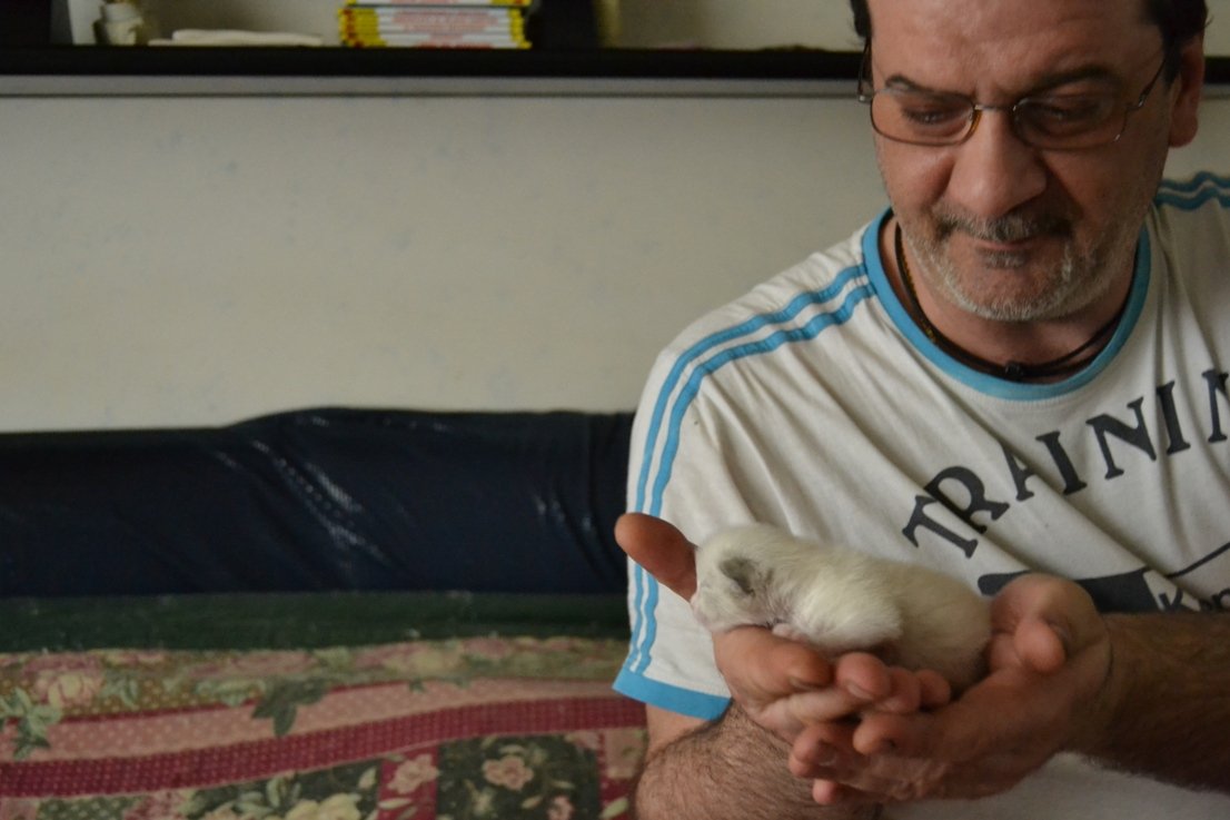Siamo io con, fra le mani, Linda, la nipote di Biko, appena nata. Aveva 45 giorni, (2013)