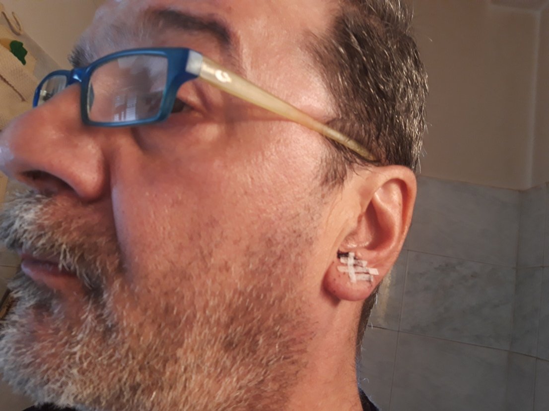 Ma quando ho dovuto aprire la porta, la mano (o meglio il braccio) dovevo liberarlo. Chiki ha iniziato a mordermi il lobo dell'orecchio sinistro, quasi staccandomelo.