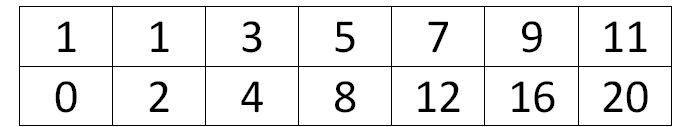 1+1=2 1+3=4 3+5=8 5+7=12 7+9=16 9+11=20 ed è una soluzione!!! Tutte le altre strade portano a 6 !!!! A meno che non sia sempre la costante 120 della briscola pazza.