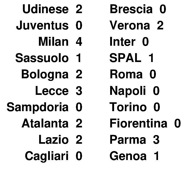 L'unico pronostico che azzeccherai sarà quello di Milan-Inter, la capolista che non riesce a vincere neanche in casa con una squadra parrocchiale, gli Young Boys (vedi commenti di Andrea nella Champions scorsa) erano più forti. :mrgreen: