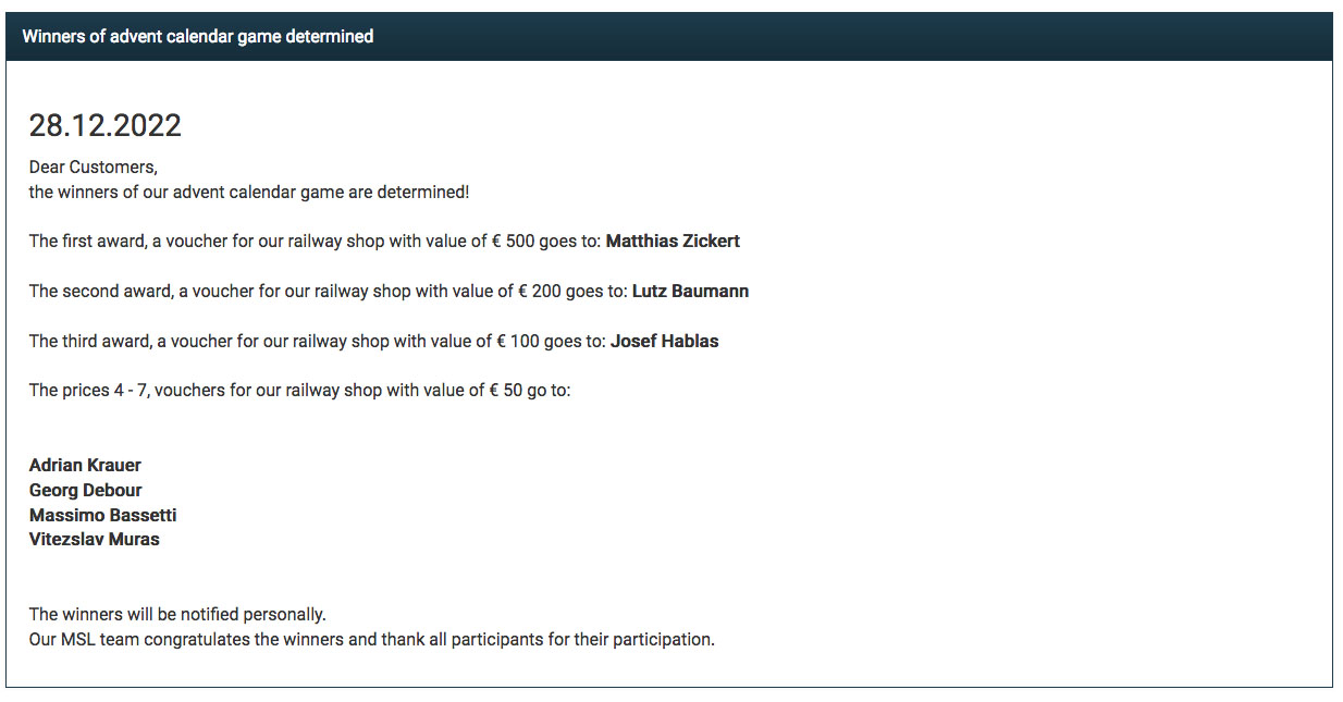 Re: Calendario dell'Avvento modellbahnshop-Lippe