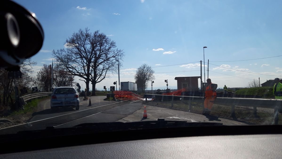 Il mitico passaggio a livello di Brescello, ora ha i binari nuovi.