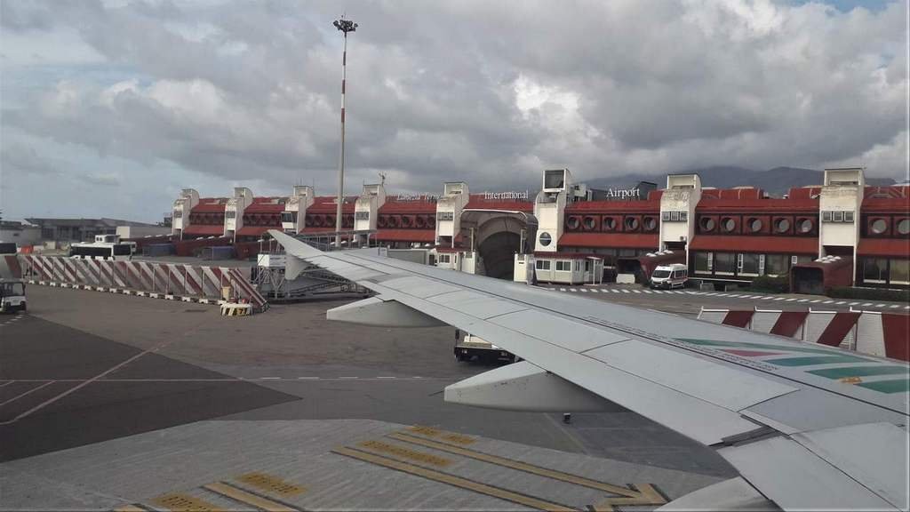 L'imbarco per il volo per Torino inizia con alcuni minuti di ritardo alle 15:45. L'aereo è un Boeing 737-300 entrato in servizio nel 1991, che si presenta in ordine e pulito, ma si distingue chiaramente essere abbastanza vecchio. La disposizione del sedili a bordo è su file di tre separate da un corridoio centrale, con un buon spazio tra i sedili e gli stessi abbastanza comodi. Il mezzo è invece molto rumoroso in volo, cosa che limita il confort. L'imbarco si dilunga per alcuni minuti, ritardo che si somma a quello già accumulato con il volo precedente da Torino, città da cui proviene l'aeromobile che stiamo utilizzando. Terminate le operazioni di imbarco inizia il rullaggio, quindi decolliamo in direzione del Mare Tirreno e poco dopo vengono serviti snack dolci e salati accompagnati da una bevanda a scelta. La giornata è nuvolosa e piovosa, ma non appena superiamo lo stato di nubi è possibile vedere il tramonto del sole, successivamente poi il buio rende possibile vedere le numerose città poste lungo la costa tirrenica. Dopo circa un ora e 30 minuti di viaggio iniziamo la discesa verso Torino, lasciamo la collina con la basilica di Superga alla nostra destra e quindi atterriamo a Torino Caselle alle 18:20, con venti minuti di ritardo.