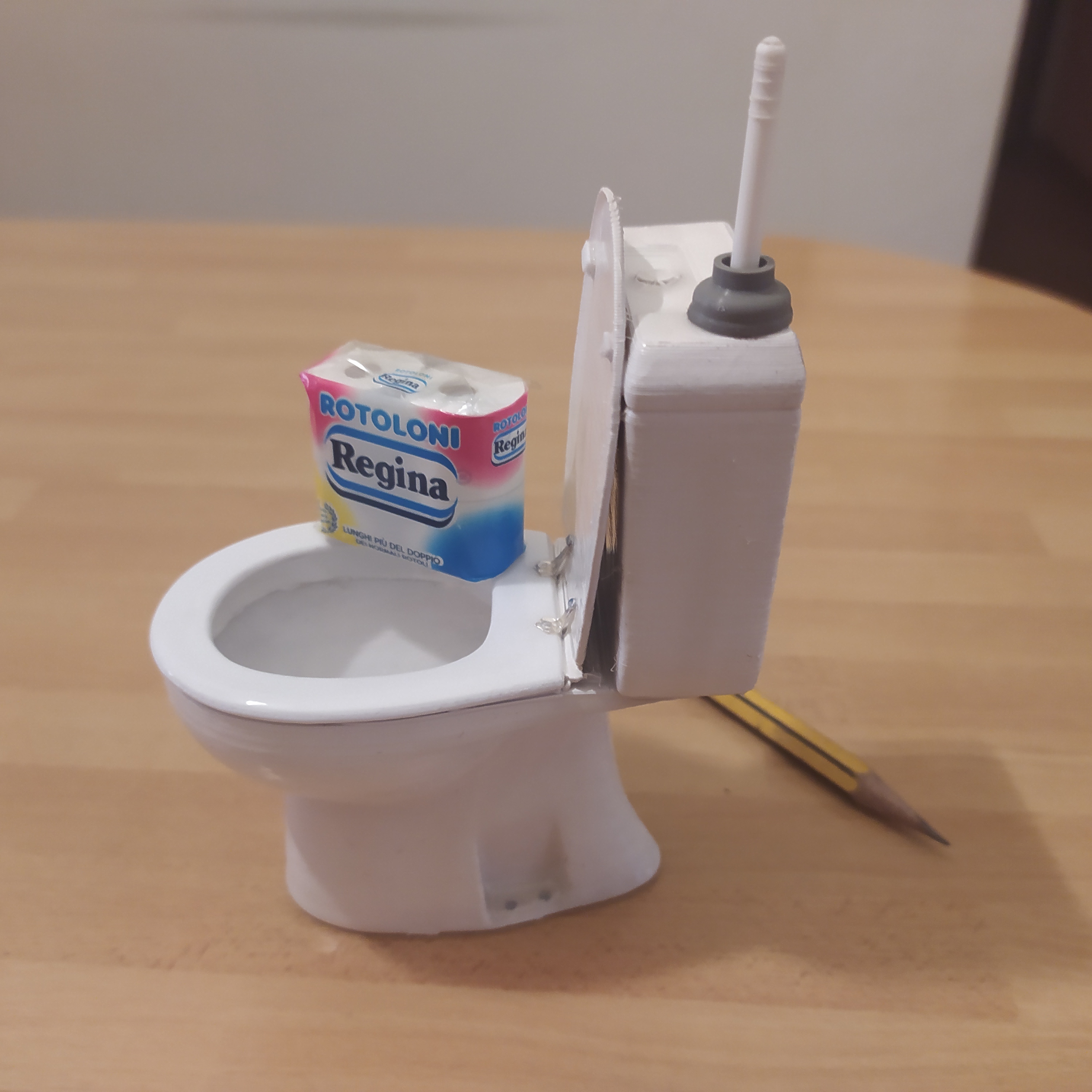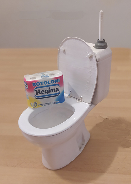 Grazie Giorgio.. :D :D ma non è che ci sia molto da dire..è una stampa 3d rielaborata , nativa in PLA , poi aerografata ed infine ricoperto il tutto con resina trasparente catalizzante..il pacco di rotoli di cartta igienica , è un omaggio del supermercato, fatalità risultante in buon rapporto scala con il sanitario, mentre lo stura lavandini l'ho realizzato con un tappino di gomma e manichetto in plastica...il bello è che questo oggetto , presentato a diversi miei amici , ha riscosso ilarità e parecchio suc.cesso (!! [245] ) e richieste me ne sono state fatte ! [246] [246]