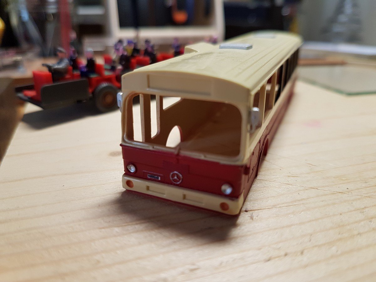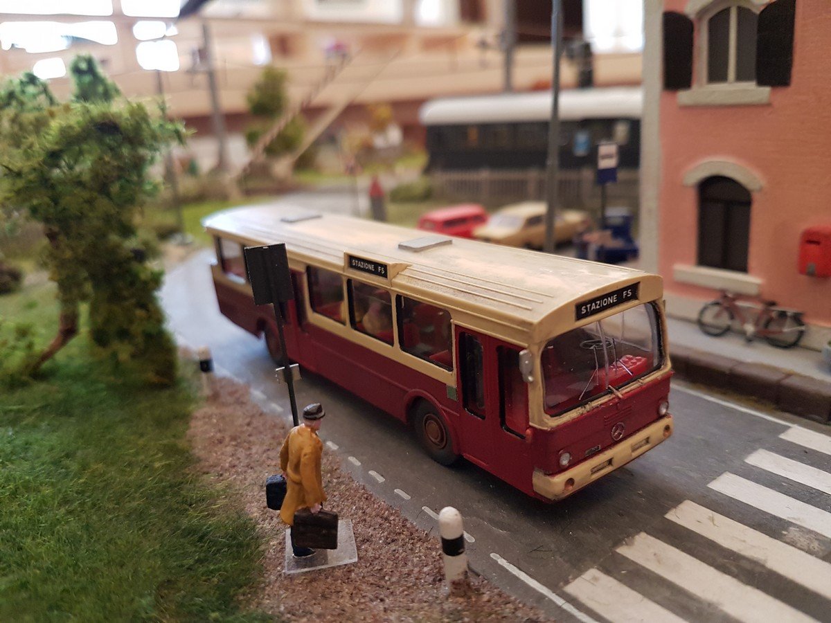 Ciao a tutti, ecco un nuovo aggiornamento (dopo un sacco di tempo!), qualche anno fa fa ho acquistato in fiera a Verona un pullman Viking a pochissimi euro, ho pensato di rielaborarlo e di adattarlo al plastico in epoca IV, ecco i risultati: