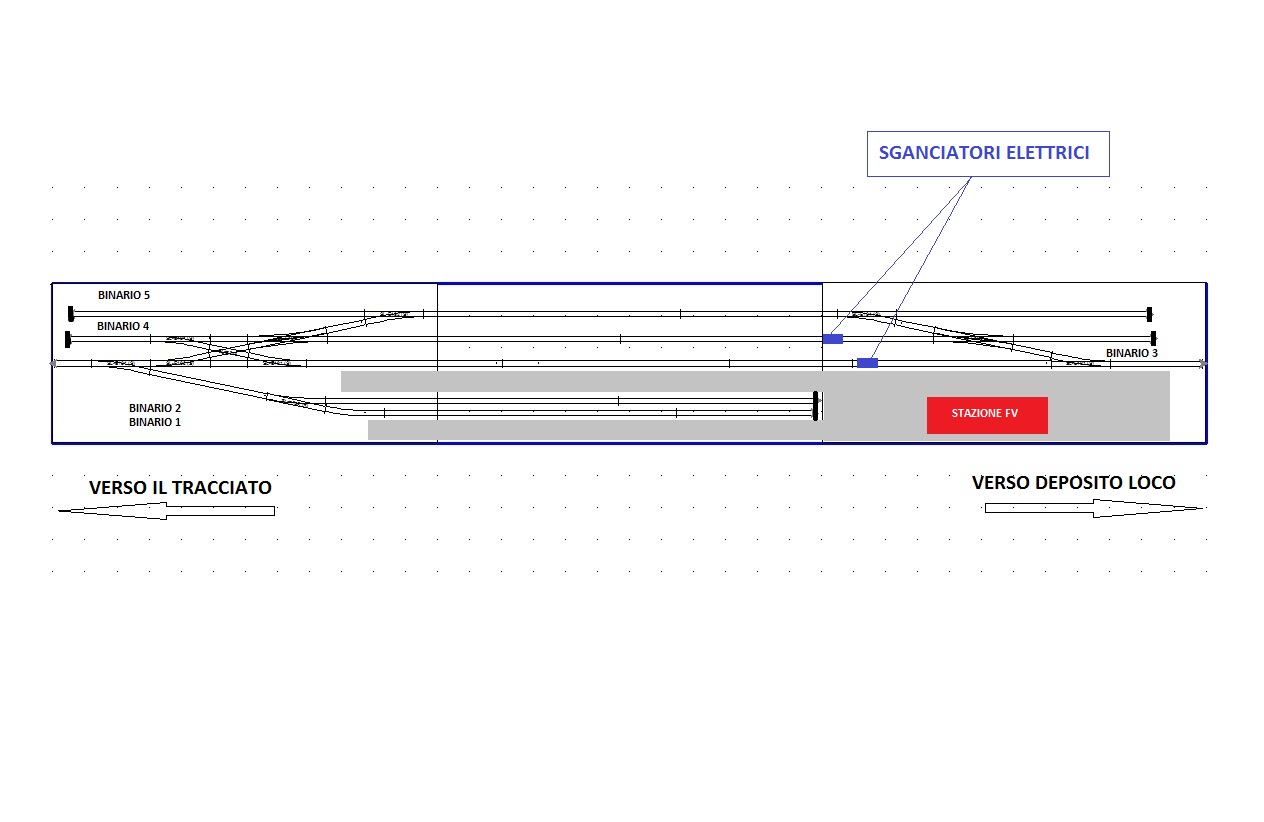 I binari 3 e 4 hanno uno sganciatore elettrico presente in posizione opportuna dal lato verso il deposito loco.