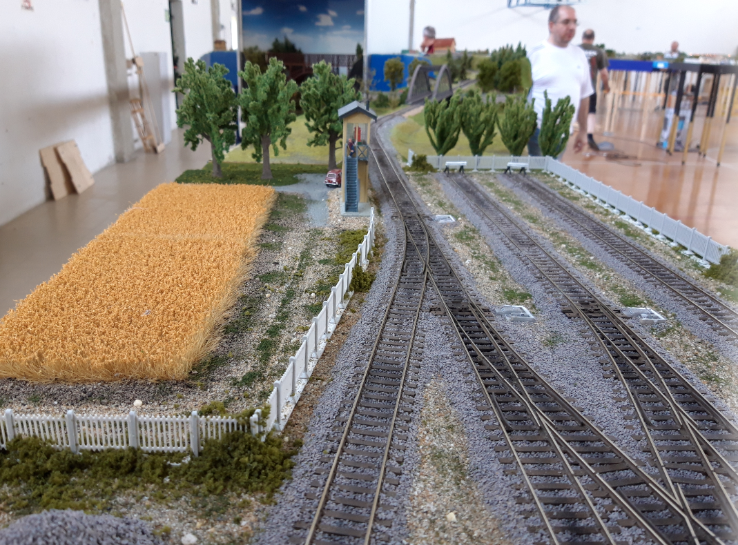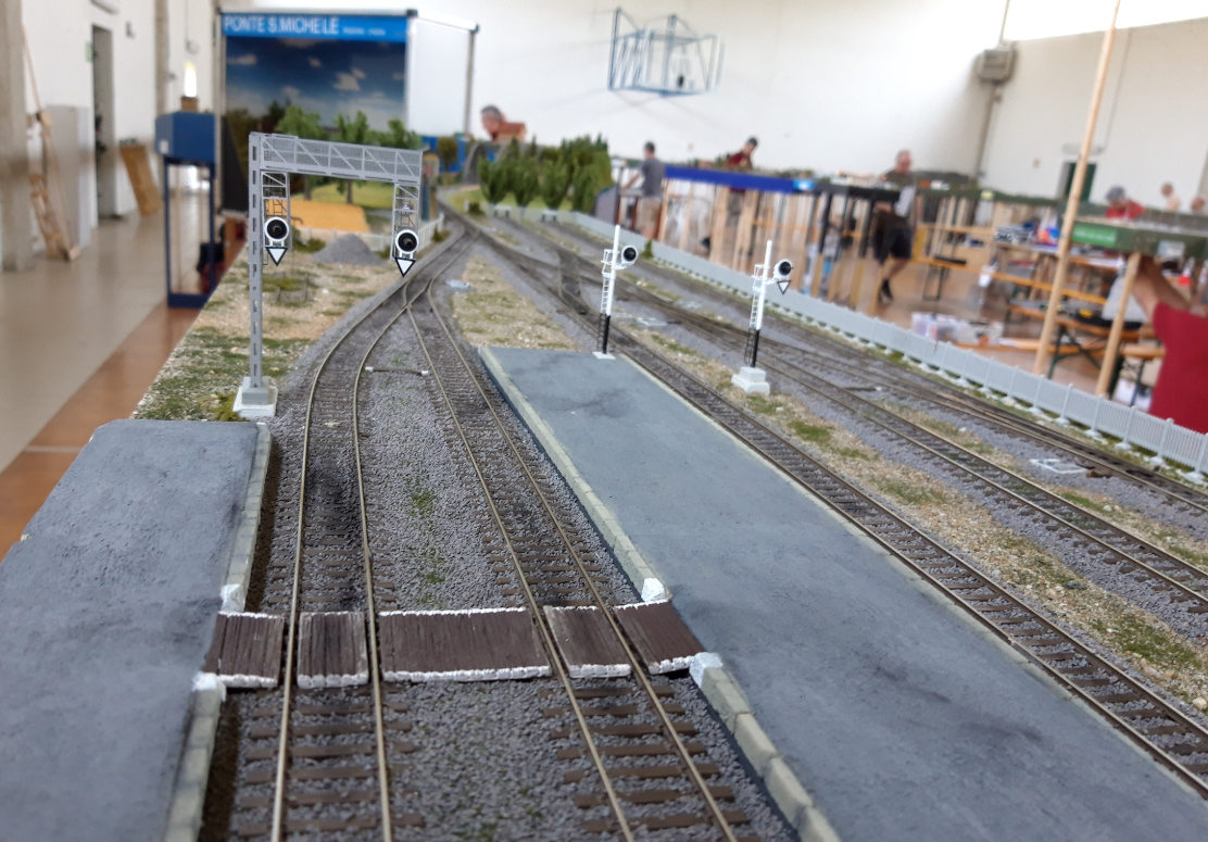 Ovviamente la scenografia è ancora all'inizio ma il piano binari, i deviatoi e i sensori sono tutti ben funzionanti e in questa occasione saranno ulteriormente collaudati.