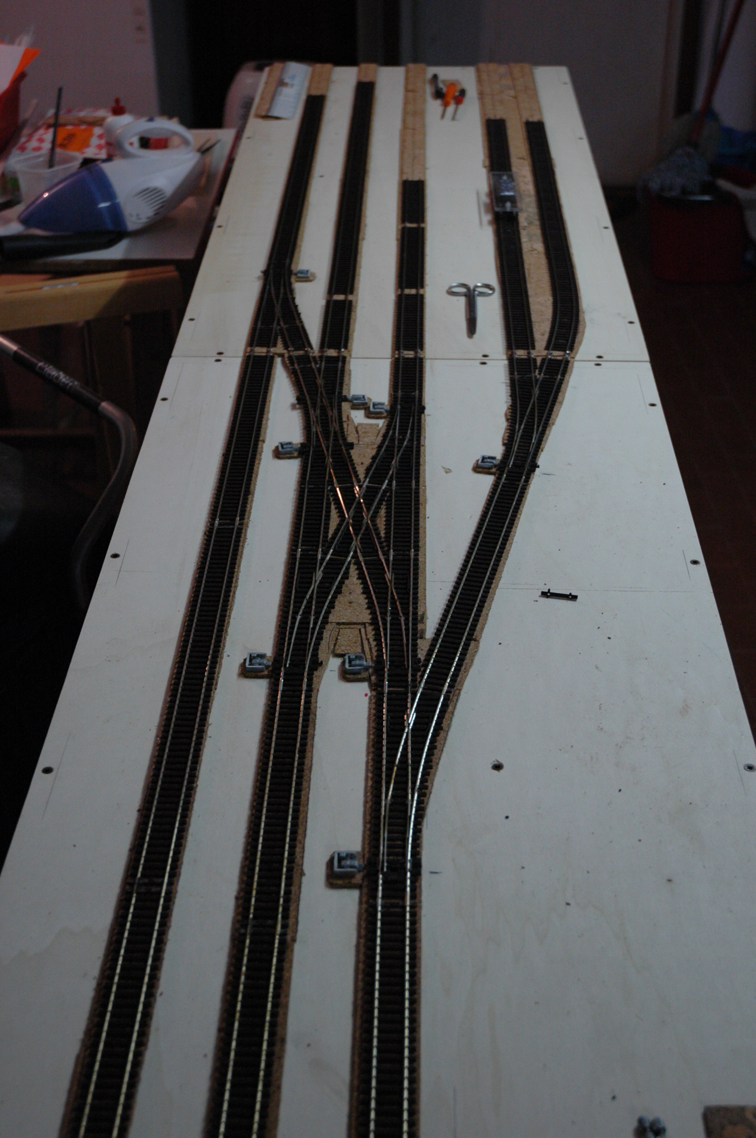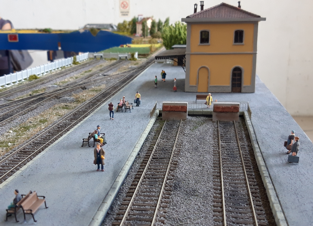 Come da titolo doveva essere una stazione di testa a tutti gli effetti, collegata posteriormente ad una piattaforma girevole; e i binari tronchi dovrebbero avere le marmotte che non ho ancora avuto tempo di installare. Poi, per esigenza varie, il terzo binario, quello centrale, è diventato passante......