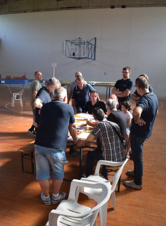 Chi si è assunto l'onere dell'organizzazione ha già, intanto, nei mesi precedenti, sviluppato tutto il lavoro sotterraneo che serve per far funzionare il tutto. Per prima cosa ha trovato il posto (di solito una palestra) dove poter installare il tutto, ha ricevuto le iscrizioni dei partecipanti, ha registrato i loro eventuali moduli (per chi li porta, ovviamente... i moduli devono avere tutti il proprio disegno in formato Autocad o compatibile DXF per permettere il disegno del layout definitivo, le stazioni dovranno possedere la propria scheda stazione con indicazioni sulle lunghezze dei binari e le tipologie di utilizzo), ha chiesto a tutti le eventuali disponibilità di materiale rotabile suddiviso per epoche e tipologie (tutto il materiale dovrà essere dotato di propria scheda carro/loco). Una volta ricevuto il tutto e chiuse le iscrizioni, si procede con la stesura del layout. Il plastico dovrà cercare di riprodurre una o più linee ferroviarie, di vario genere a seconda dei moduli disponibili (quindi linea termica, elettrica oppure entrambe con stazione di diramazione, stazioni sul percorso, bivi, raccordi industriali e quant'altro). una volta predisposta la linea si dovrà costruire un orario di esercizio (come al vero questo dovrà tenere conto delle "coppie" di convogli transitanti dove per "coppia" si intende il transito da A a B e ritorno da B a A, terrà conto dei traffici merci nelle stazioni e nei raccordi industriali con manovre di sgancio/aggancio, dei convogli espressi che "interferiscono" nella gestione "locale" della linea, etc etc). Una volta pronto l'orario (e di conseguenza definiti i convogli necessari), il più è fatto. Nei giorni di meeting si provvederà al montaggio del tracciato, al briefing nel quale verrà spiegato a tutti l'orario e si suddivideranno i compiti, chi farà il macchinista, chi il dirigente di stazione, chi l'assuntore etc, e poi verranno ripetute le varie sessioni di orario con un tempo accelerato cercando di rispettare il più possibile la tecnica ferroviaria (i dirigenti dovranno comunicare tra loro dichiarando i "giunti" e le "partenze" dei vari convogli dalle stazioni - dopo aver predisposto la linea libera e l'eventuale segnalazione connessa, sia di protezione sia di instradamento, i macchinisti dovranno eseguire il loro orario rispettando il segnalamento, i rallentamenti eventuali e le varie norme ferroviarie).