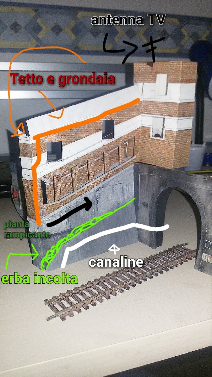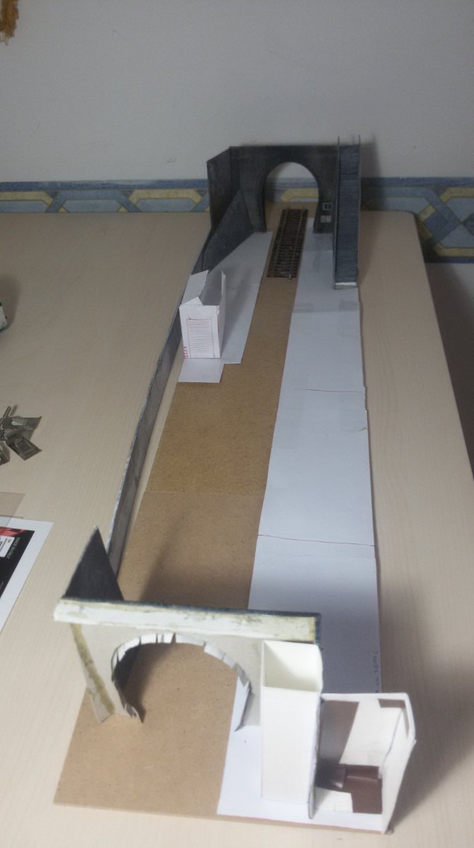 vedo che hai una predisposizione per la pittura, la colorazione dei portali non è male. Esistono i moduli da manovra in caso che non puoi avere molto spazio a disposizione, essi ti permettono di simulare varie manovre facendo muovere loco e rotabili in spazzi minimi anche in HO a questi link dei pdf da scaricare per vedere cosa ti propongo