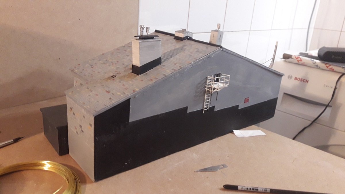 La stazione è quasi completata, mancano cartelli e alcuni particolari sul tetto (due piccoli camini, grondaie e fermaneve). Dettagliato anche il retro che sarà poco visibile una volta posizionato l'edificio sul plastico (e in parte "affogato" nel terreno). L'edifico è venuto bene. Le foto non gli rendono giustizia.