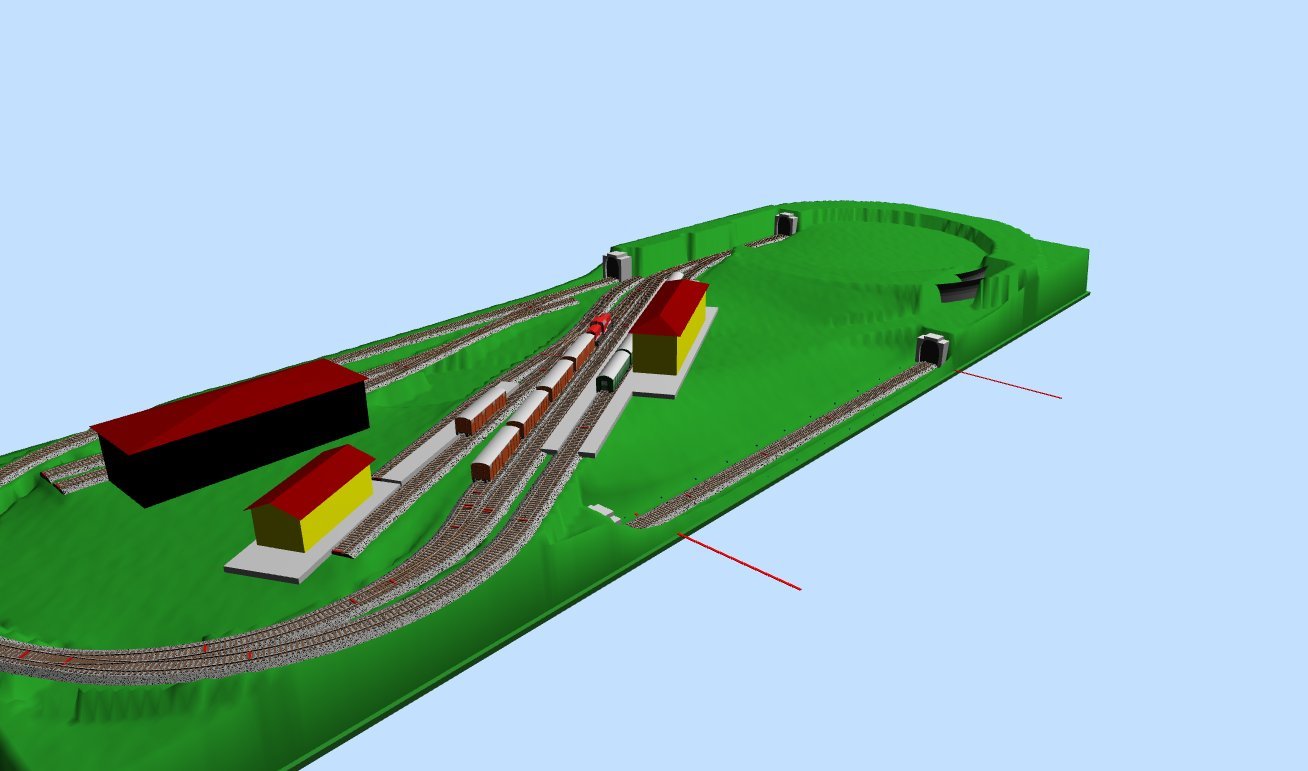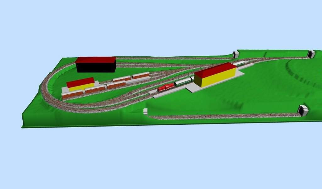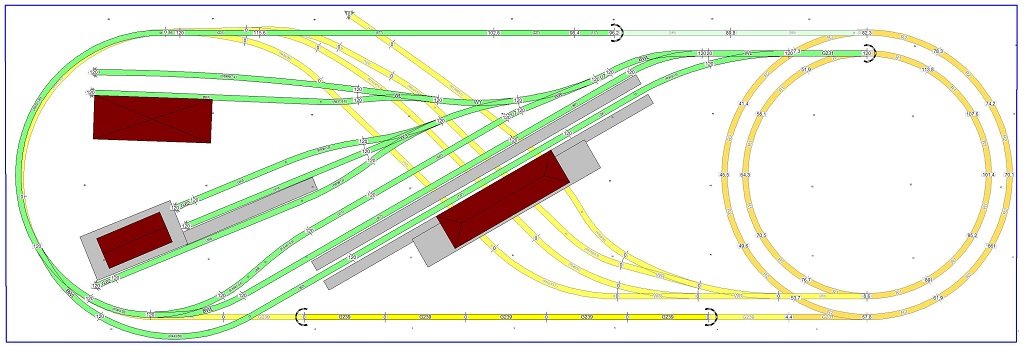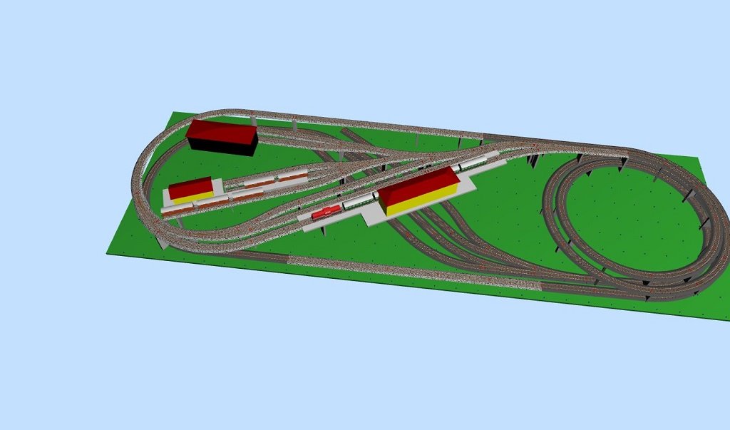 -la cosa che ho notato subito cosi come lo hai progettato che i binari di stazione sono corti, il secondo e una 70 di cm, il terzo addirittura meno di 40cm, cosi considera che ci vedrai loco più qualche carro, si potrebbe migliorare la situazione con scambi in curva,