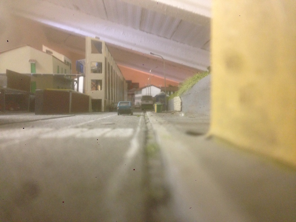 Attenzione però: il fondale è un plastico su due dimensioni. Occorre giocare di pennello e colori, foto disegni e fare un collage che crei l'effetto prospettico tridimensionale e moltiplichi la profondità scenografica del plastico, valorizzandone la scenografia reale del plastico!