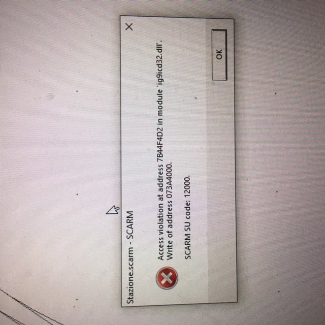 Access violation at access 7B44F4D2 in module 'ig9icd32.dll'.