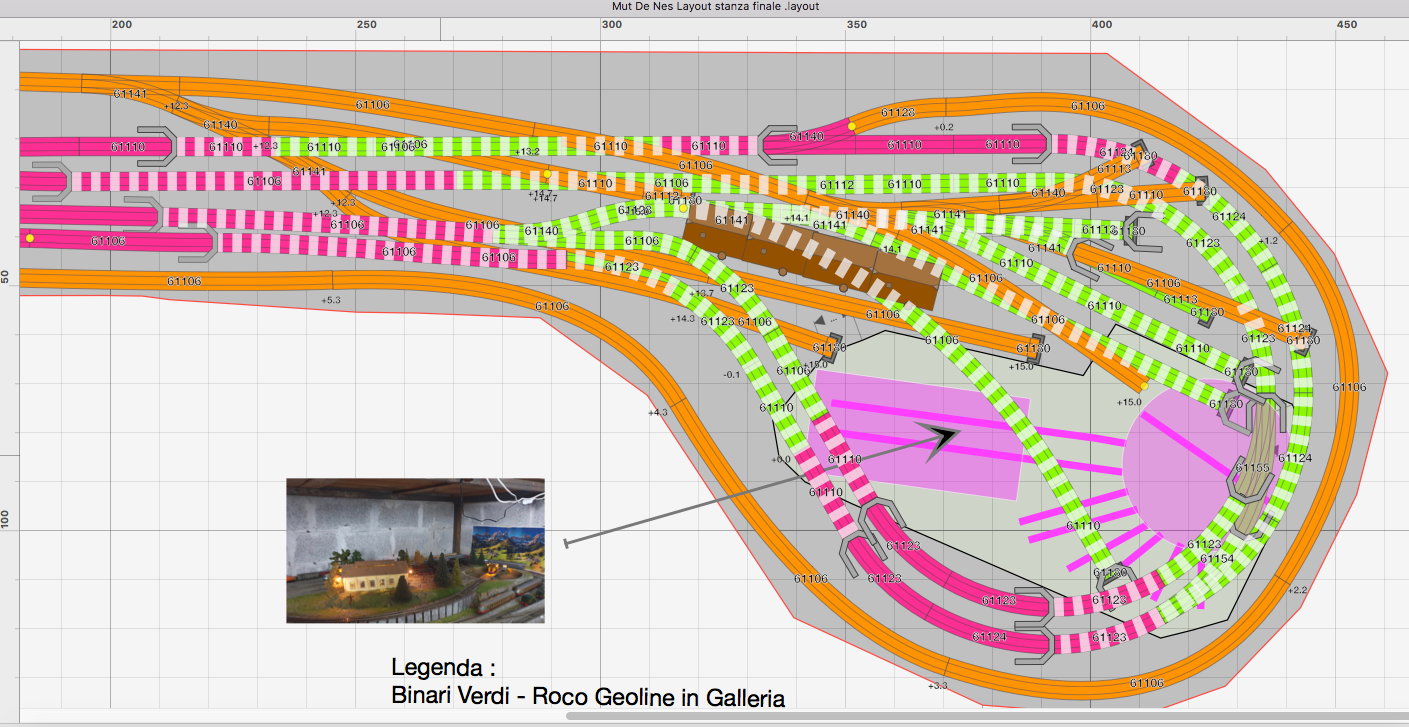 Un suggerimento che vorrei darti è quello di aumentare i raggi di curvatura dei binari rosa nell'angolo del layout e ridurre, se possibile, quella doppia ansa visto che sono a vista.