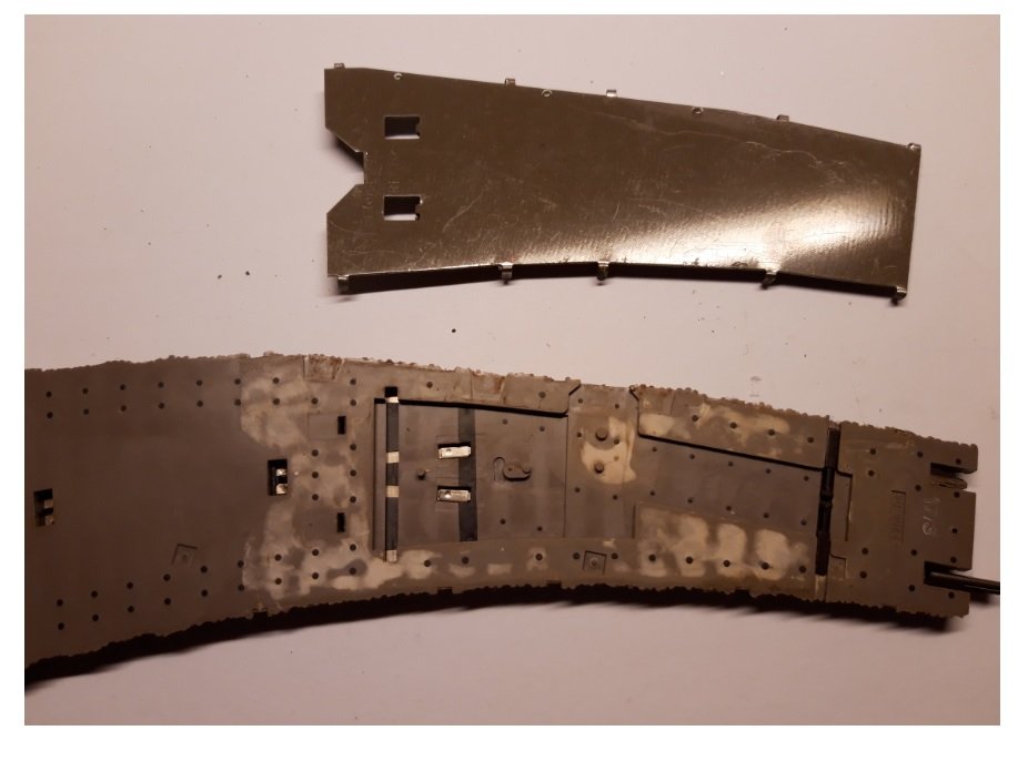 Iniziamo con il vedere il sotto del deviatoio che presenta una placca metallica