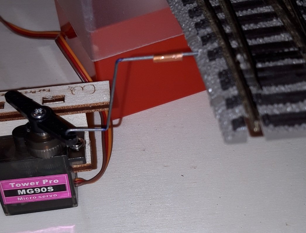 Trattandosi di un plastichetto di prova ho pensato di non tribulare e mettere i servomotori di fianco al deviatoio, cosa che potrebbe essere ripetuta in stazioni nascoste o tratti non in vista. Con qualche accorgimento in più si possono utilizzare i servomotori anche sottoplancia ma per questa volta non mi sono posto il problema.