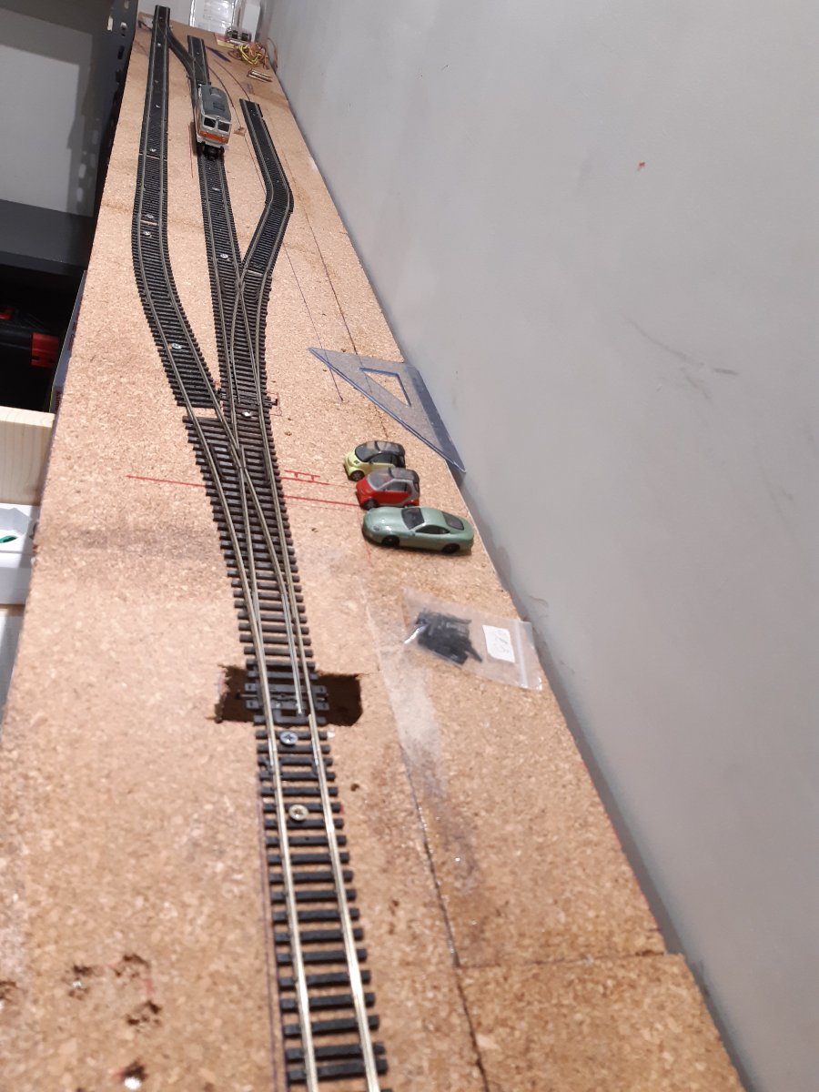 Tra il binario 1 e 2 è presente una coppia di deviatoi per il giro macchina, che dovrò inserire anche tra i due binari in primo piano per permettere le manovre nello scalo merci.