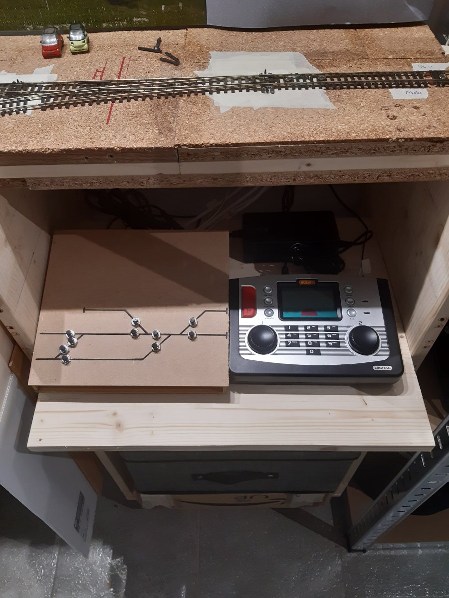 Un suggerimento: dato che hai la centralina DCC io valuterei l'opportunità di aggiungere i decoders per il controllo in digitale dei deviatoi. In questo modo risparmi sul cablaggio, sulla pulsantiera e sul lavoro necessario.