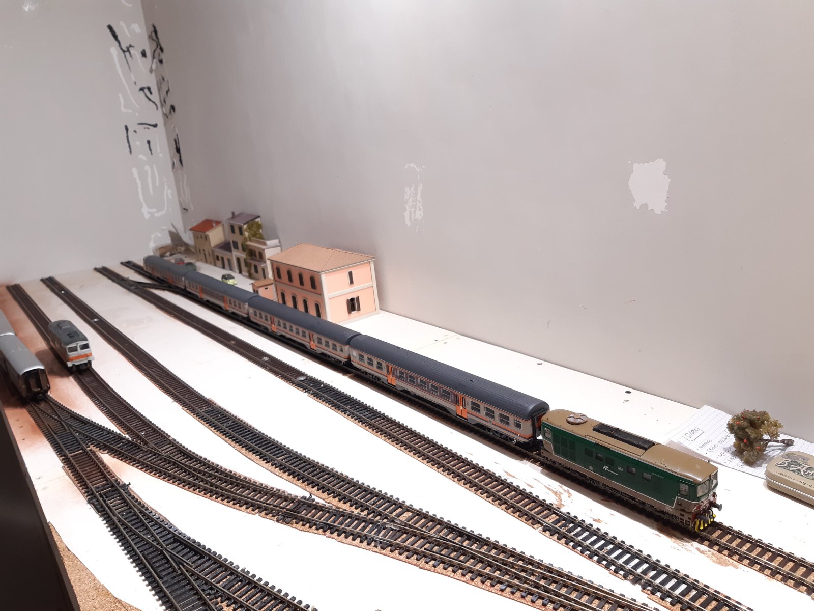 Il diorama che stavo costruendo ha iniziato, dopo un po', a non soddisfarmi del tutto, probabilmente a causa delle pochissime manovre possibili con quel tracciato. Ma ahimè, lo spazio che avevo a disposizione all'epoca era quello e dovevo accontentarmi.