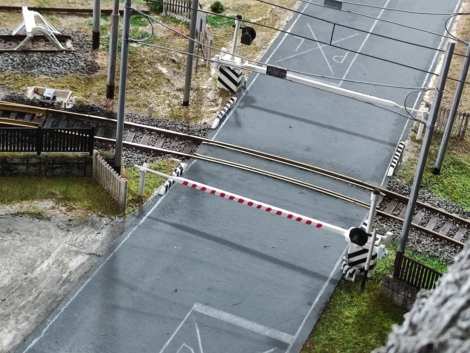 Campanelle Leopolder, cartelli di stazione e di sicurezza (Non attraversare...), vasi con vegetazione, panchine e magari il "gabbiotto" dalla cabina di blocco posto sul frontale della stazione in zona centrale.