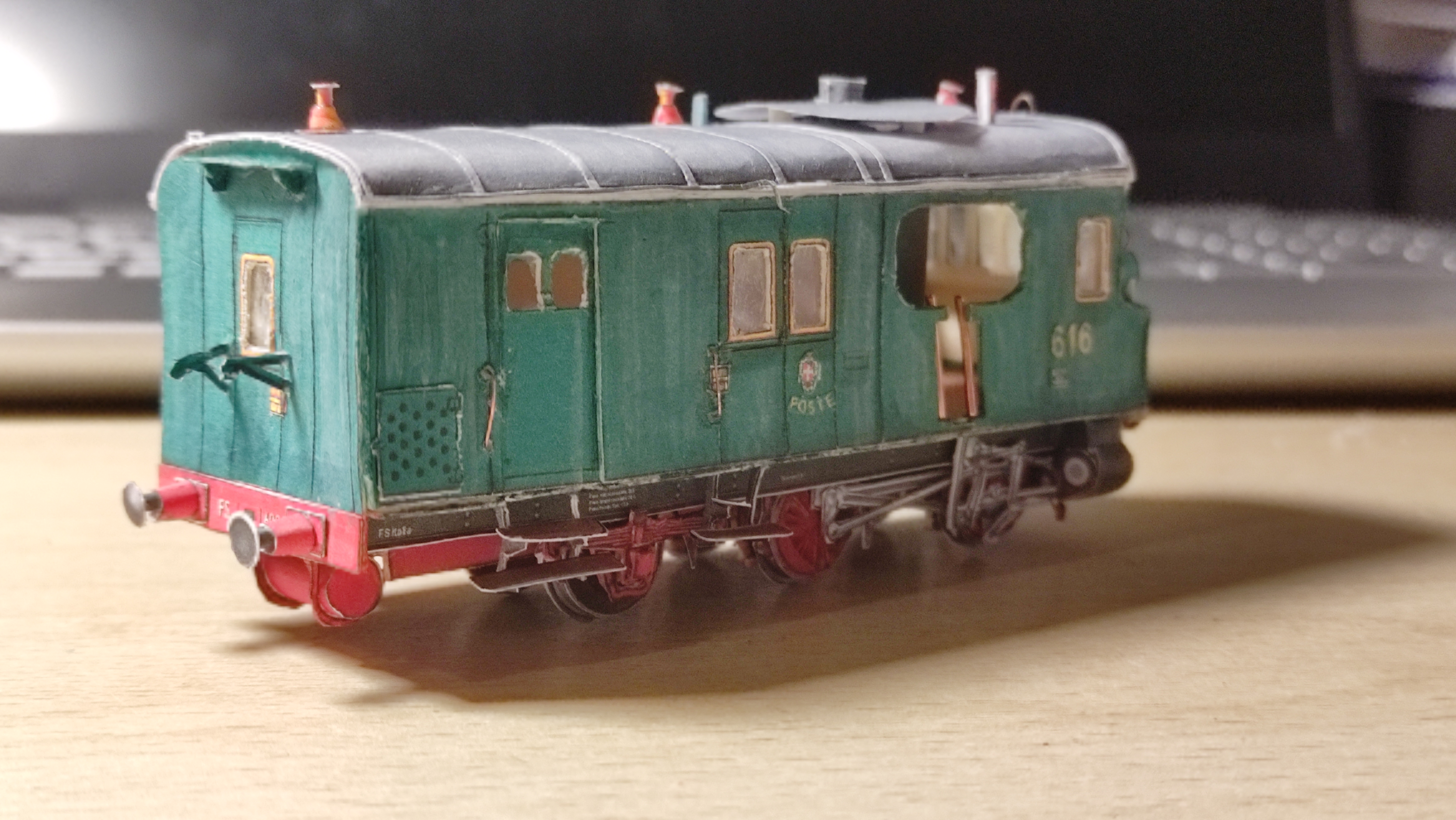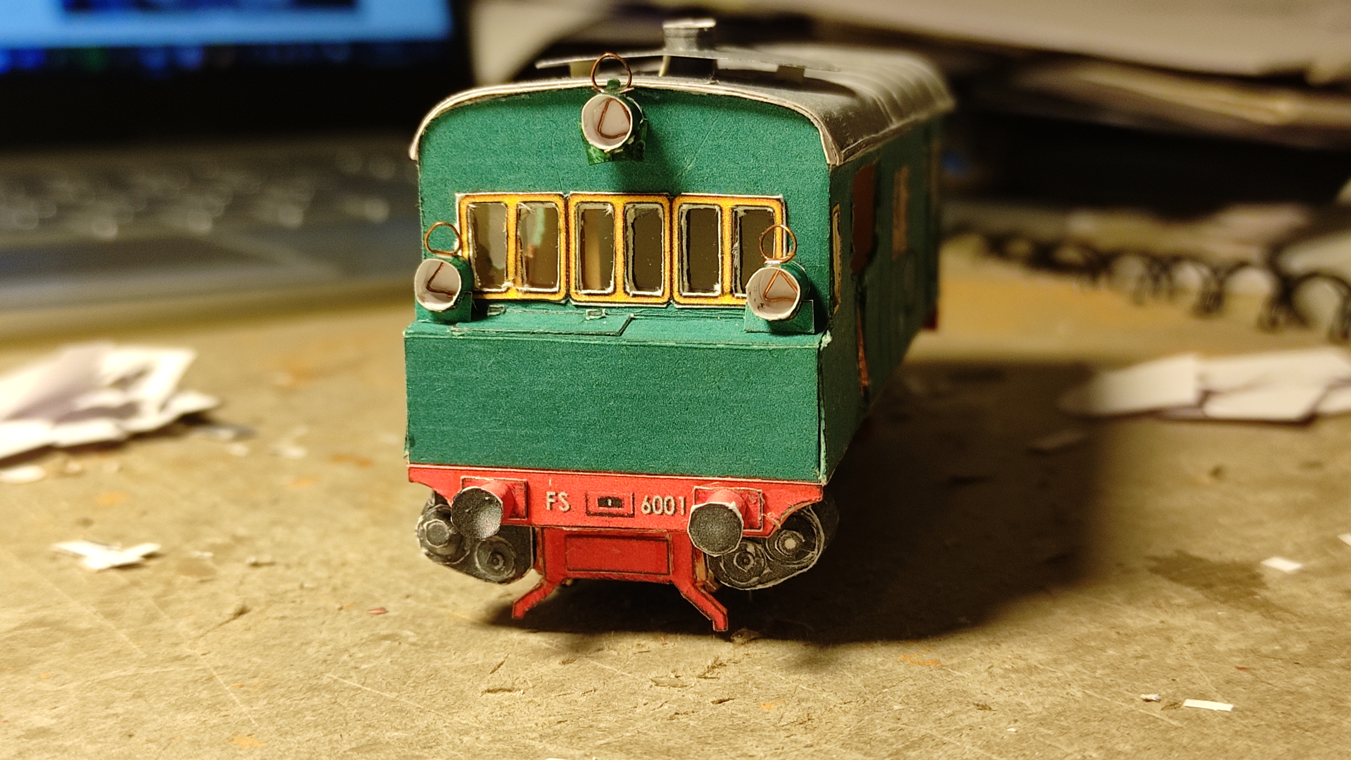 Ieri sera ho continuato il lavoro di dettaglio sulla Gr 60: aggiunti i fanali anteriori (migliorati con un po' di filo di rame sottile preso da un cavo elettrico), i respingenti anteriori e, sempre con il filo di rame, ho fatto un po' di maniglie laterali. Giusto due foto...