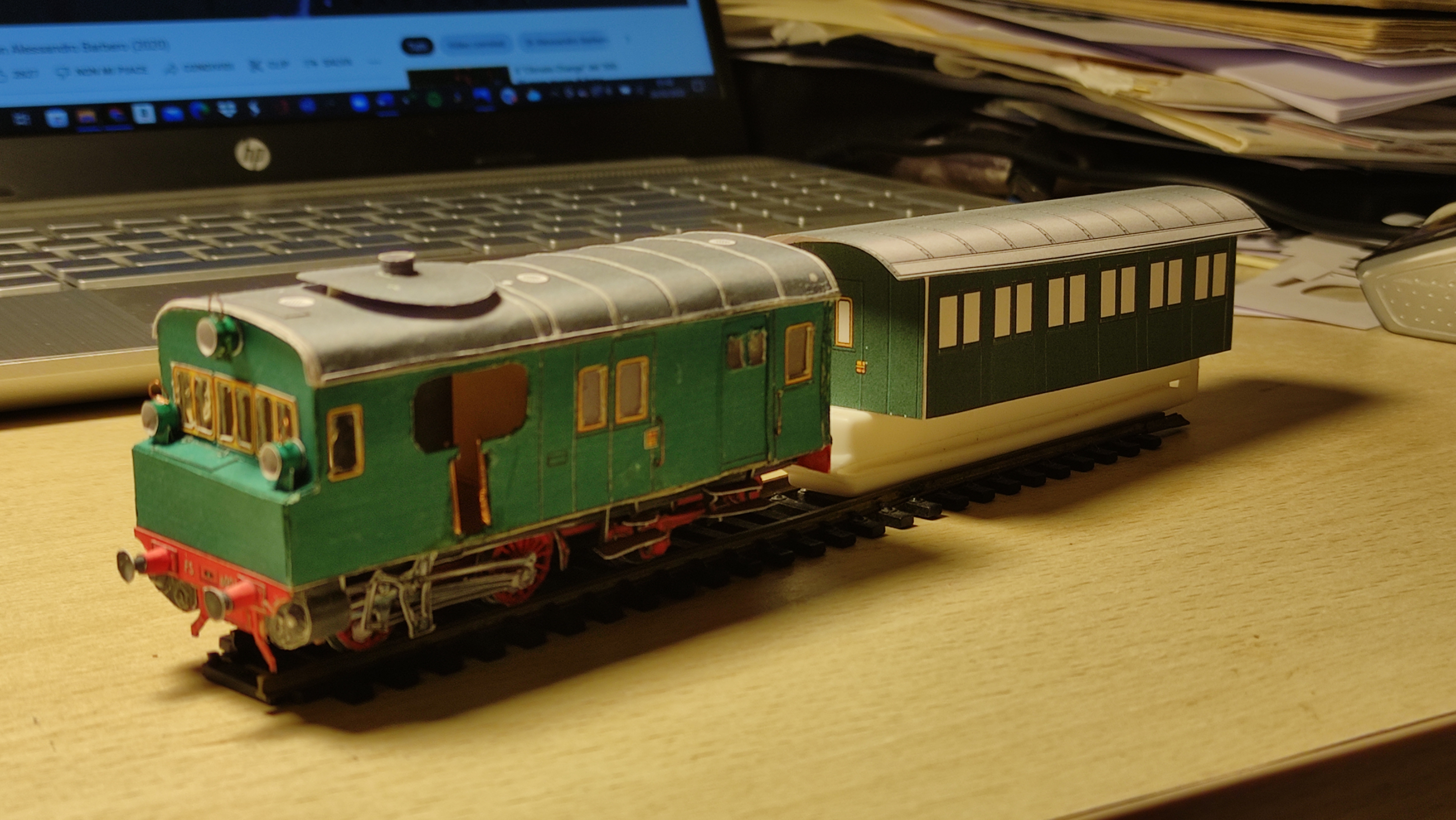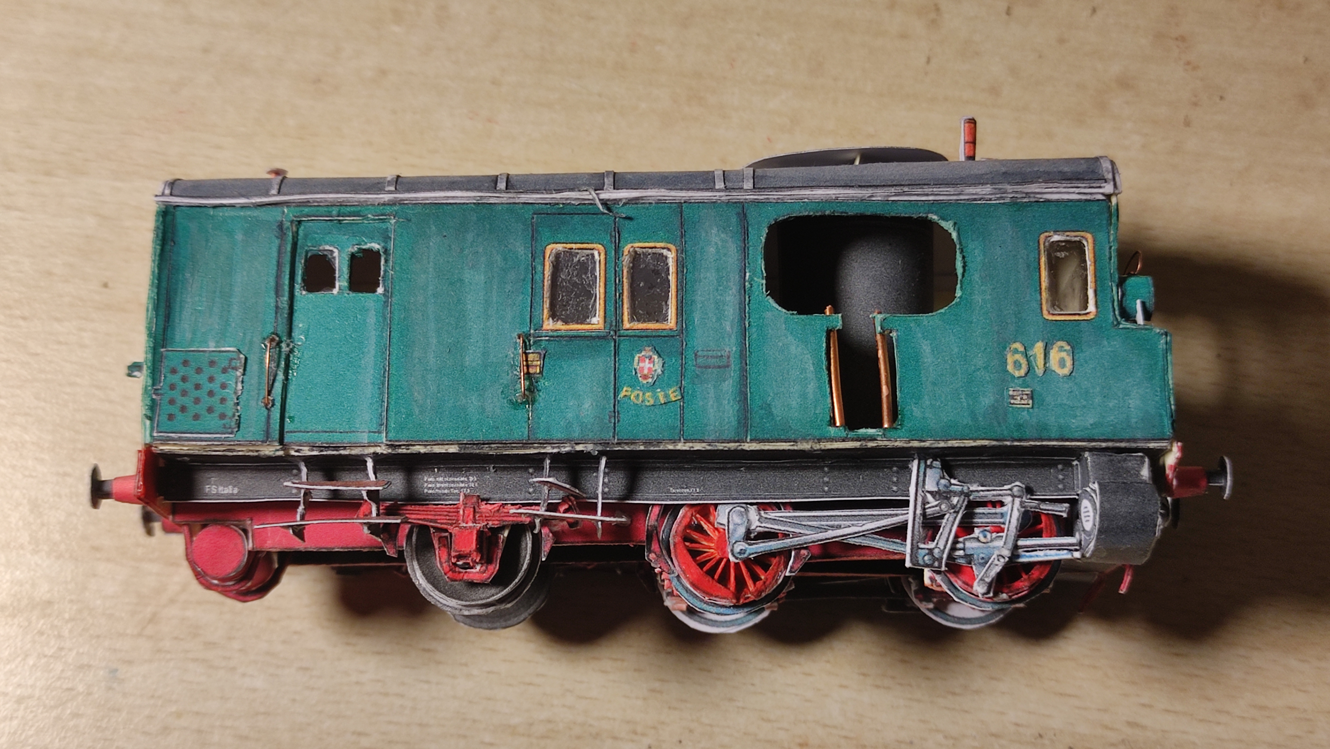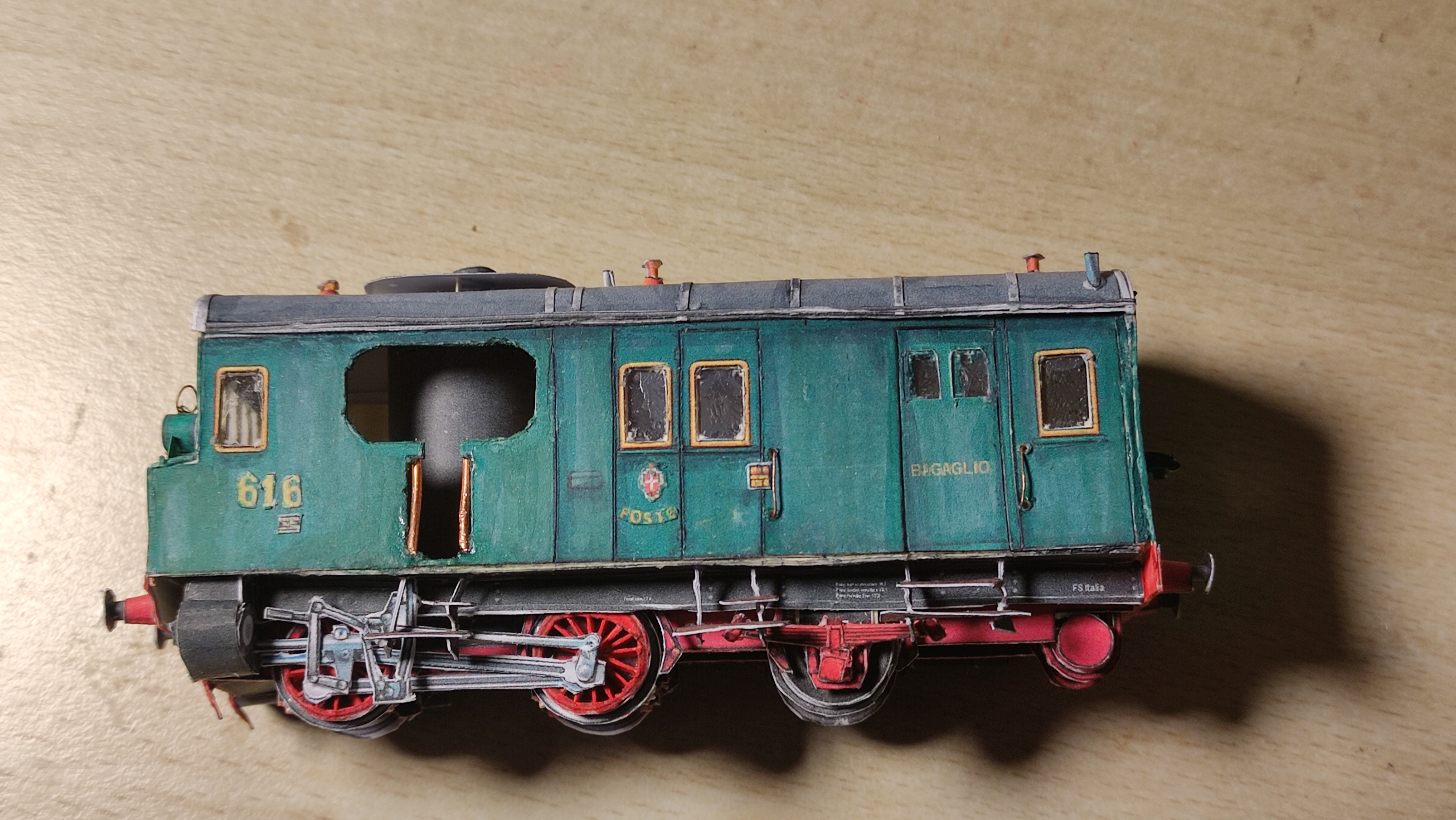 Nel frattempo ho continuato le rifiniture sulla loco: ho montato le strutture sul tetto (di cui ipotizzo la funzione ma non so quasi nulla... Ma è un altro discorso).