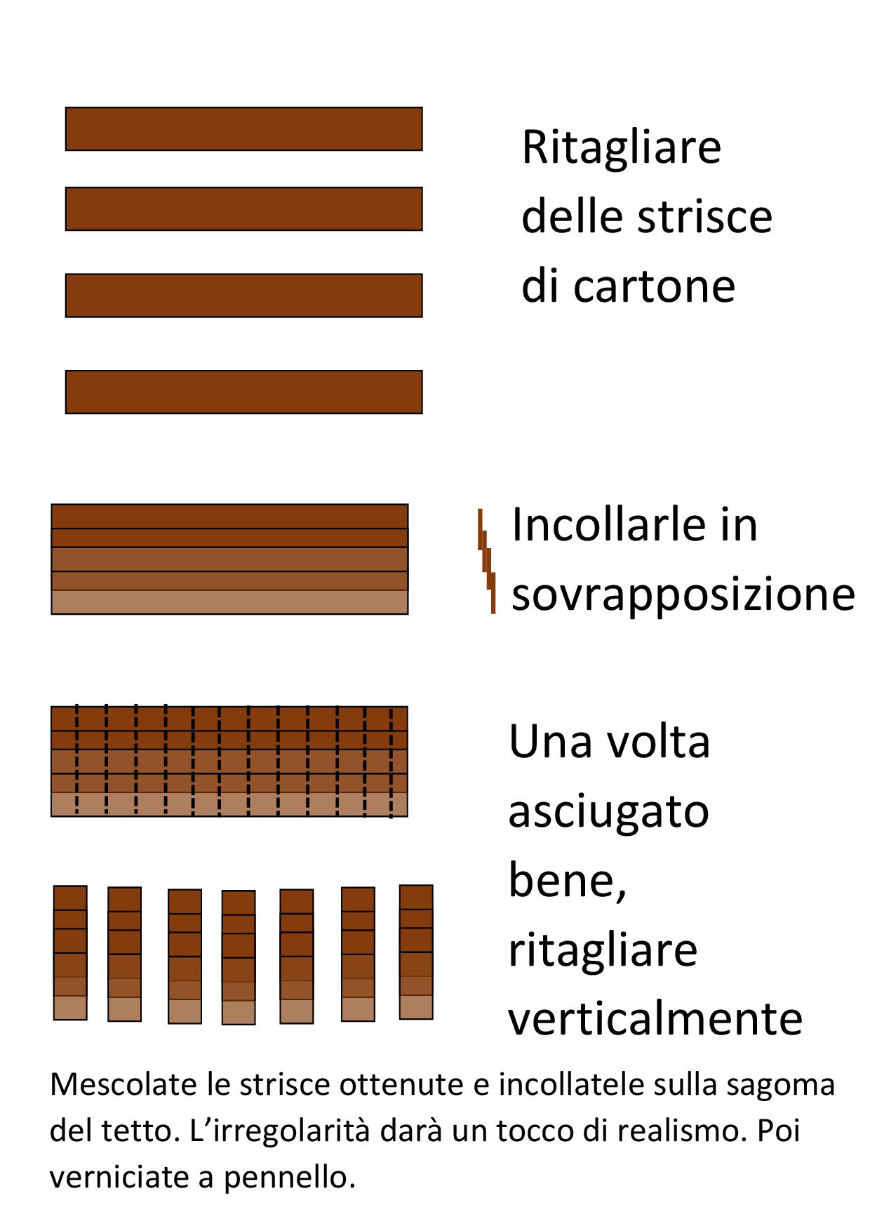 Per il tetto io uso la tecnica segnalata da Francesco per simulare il tetto a marsigliesi. Con la variante di incidere in strisce verticali, poi tagliare in strisce orizzontali per la sovrapposizione con l'incisione verticale da sfalzare con quella sottostante, in modo da avere poi un intero schema da incollare.