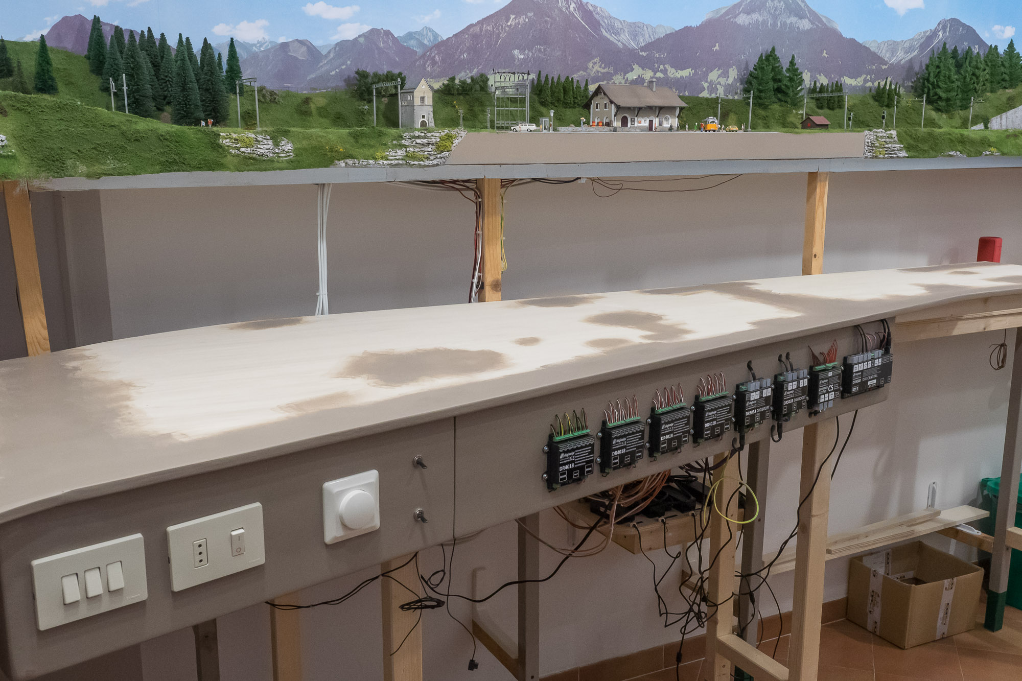 La disposizione può sembrare strana ma ho dovuto considerare la posizione dei motori sottopancia e la facile accessibilità al retro del pannello con la centrale e i vari decoders.