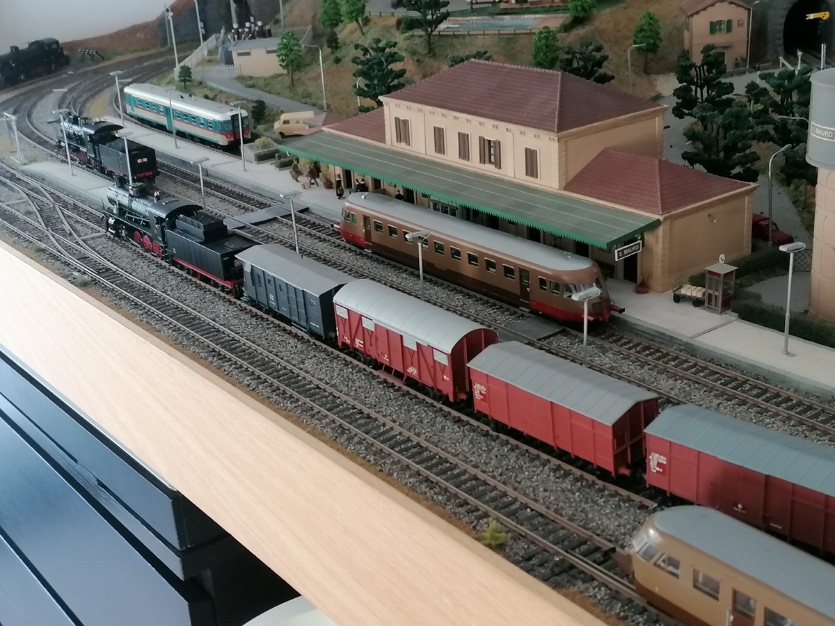 Se devo fare una critica.....direi tutto troppo pulito. Servirebbe una bella insudiciata generale, come al vero, in particolare dei binari, tanto più che abbiamo trazioni termiche.