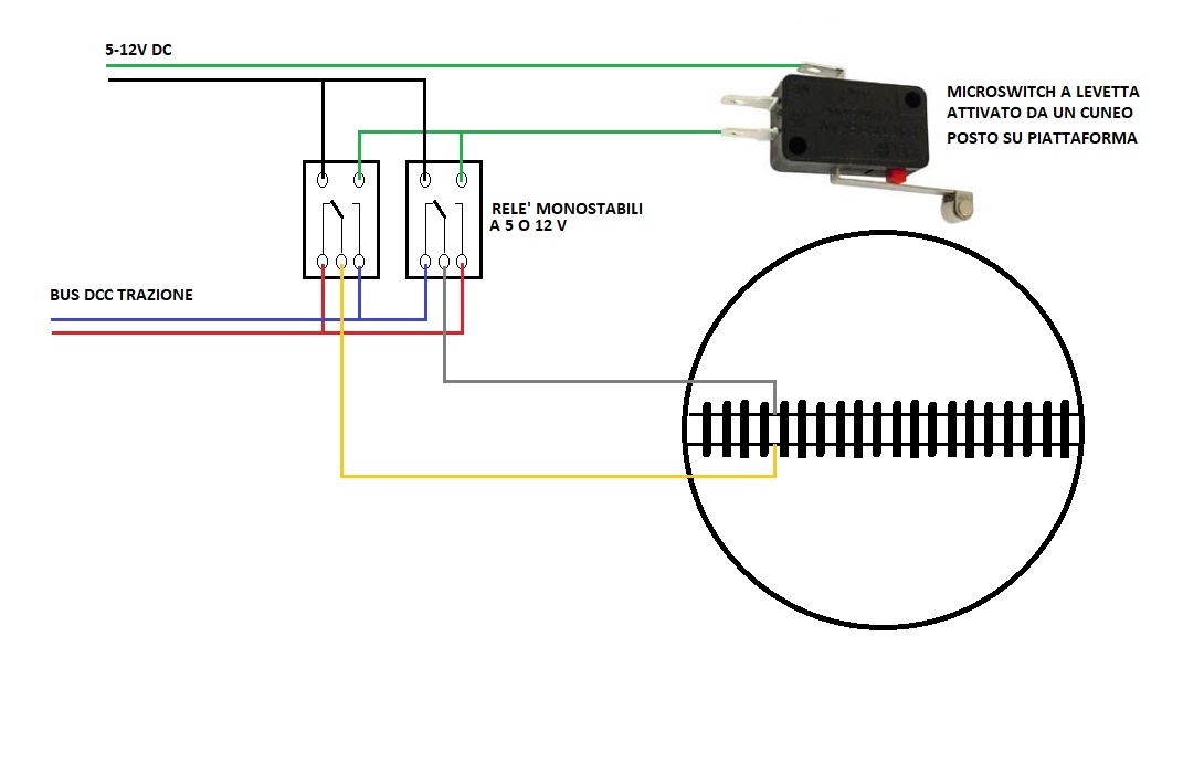 Quando la piattaforma torna a ruotare, una volta tolta pressione al microswitch la polarità torna alla fase precedente.