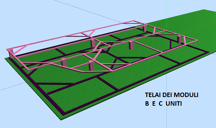 Sopra il modulo B andrà posizionato il modulo C di cui vediamo il telaio nudo e con binari