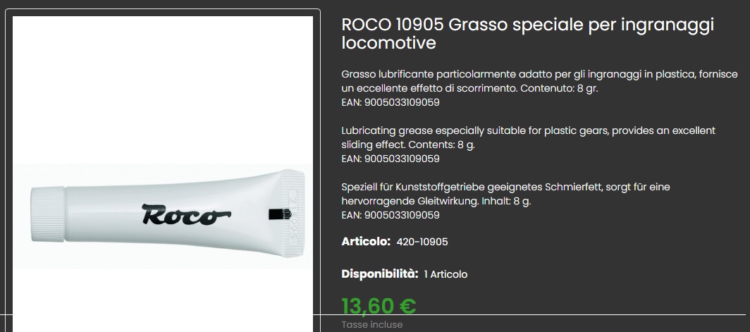 Ciao concordo con lo smontaggio e pulizia a fondo degli ingranaggi.MrPatato76 ha scritto: ↑giovedì 23 gennaio 2025, 18:04Temo dovrai smontare i carrelli e pulire pezzo per pezzo.tren0 ha scritto: ↑giovedì 23 gennaio 2025, 17:14 Salve a tutti sto riprendendo dopo una lunga pausa aoccuparmi dei miei modelli, purtroppo molti non camminano più a causa di quel grasso sintetico che si usava all'eopca che, seccandosi completamente, ha bloccato quasi tutti i miei modelli lima e rivarossi degli anni 90. Non avendo tantissima manualità chiedo se esiste un qualche prodotto in grado di sciogliere questo grasso senza necessità di rimuoverlo meccanicamente. Grazie anticipatamente.