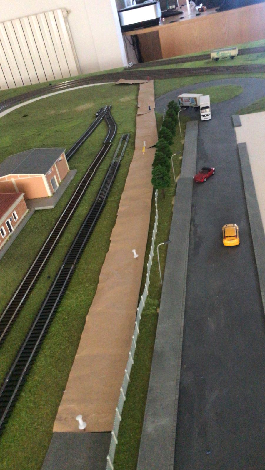 Come da foto il mio intento è quello di creare una strada sterrata (c'è a Piacenza è all'interno dello scalo) che corre a fianco della staccionata e vorrei raccordarla al piazzale davanti i caseggiati, facendogli fare la curva adiacente i binari. Sicuramente dovrò restringerla così mi sembra troppo larga, giusto per riempire un po' questa zona, in quanto nella realta è piena di "rifiuti" ferroviari e binari che vanno allo scalo dalla linea verso il ponte del Po