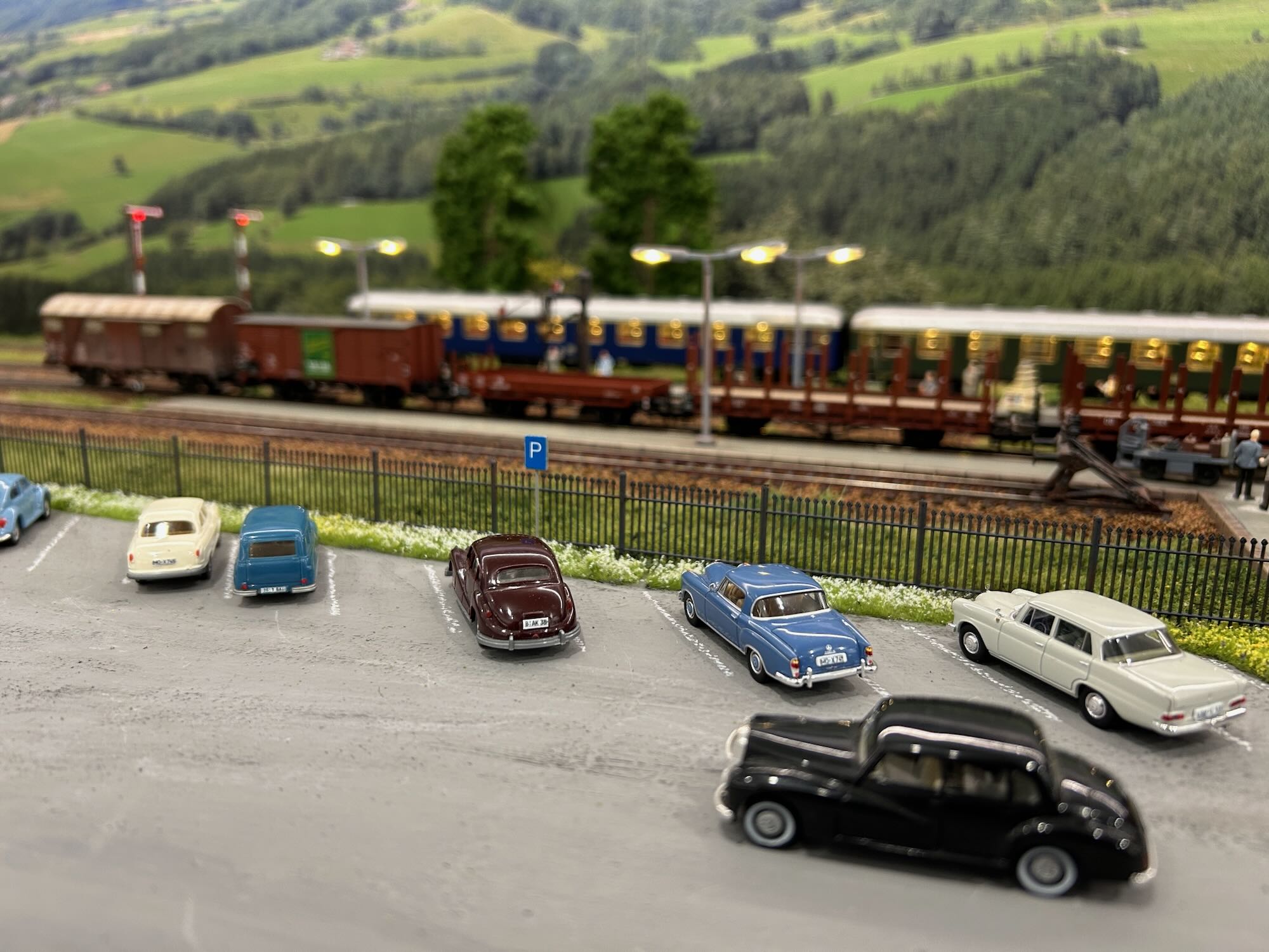 Ho completato la posa della massicciata su tutta la stazione di Sonnendorf che adesso si è popolata con veicoli, personaggi e altri accessori.