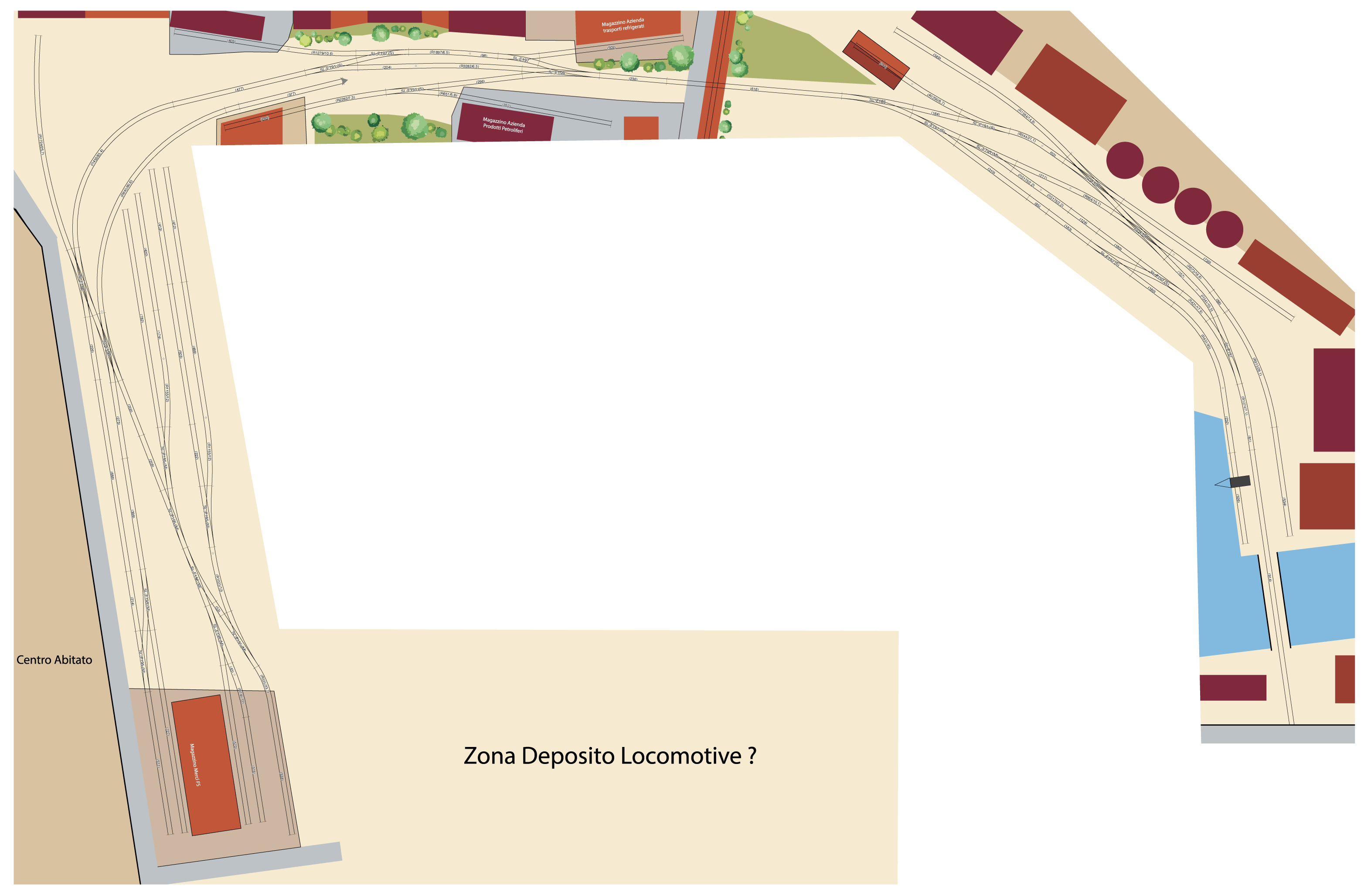 L'area carbone e scorte andrebbe rivista anch'essa, pensa solo se una loco si trova in quell'area a fare carbone e davanti a se si trova un'automotrice in rifornimento, oppure se si devono manovare carri carbone o carri scorie.