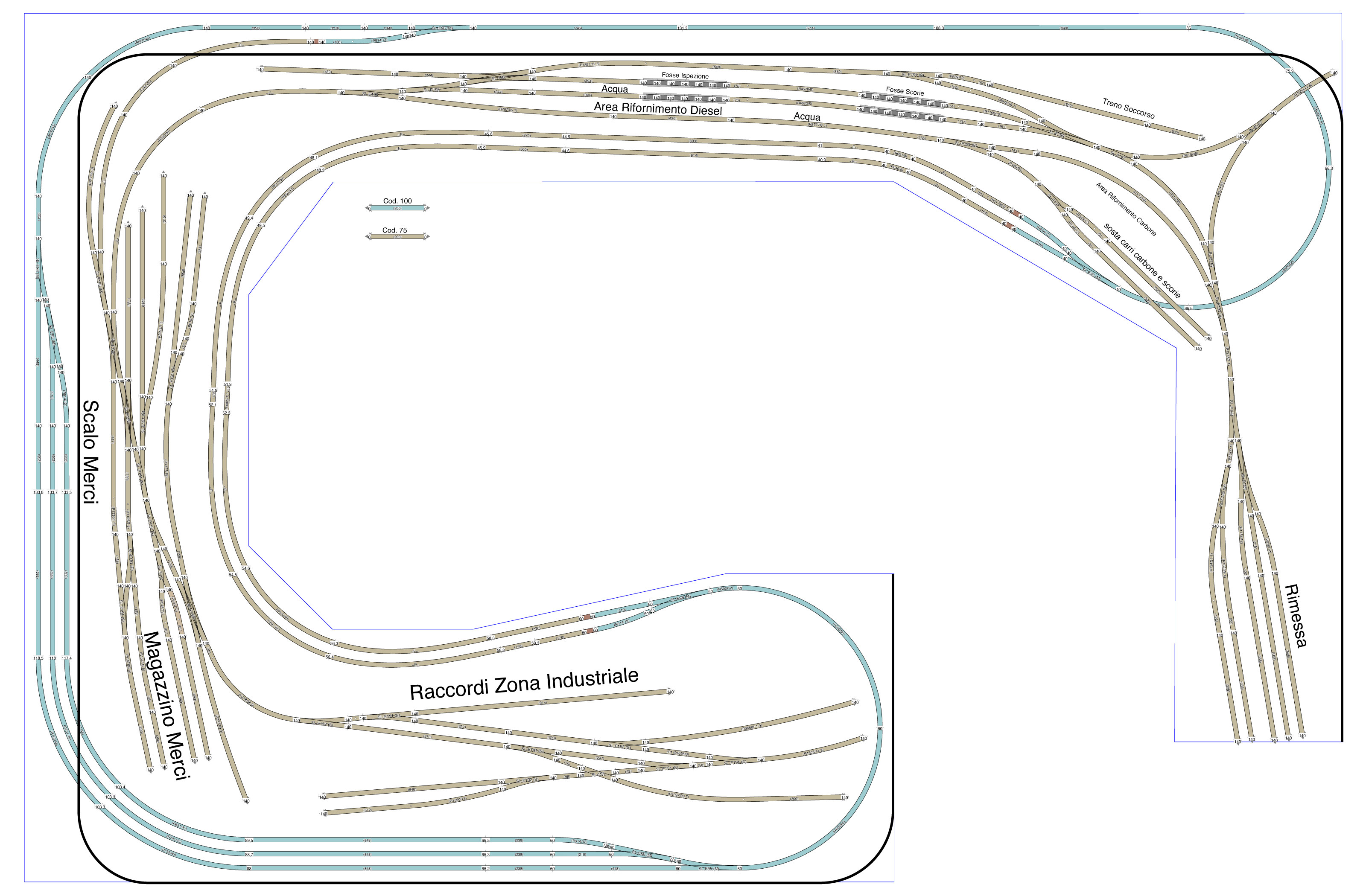 Semplicità nel numero dei deviatoi e buona dose in lunghezza dei tronchini di manovra e stazionamento, il tutto a favore del divertimento nell'eseguire mavovre.