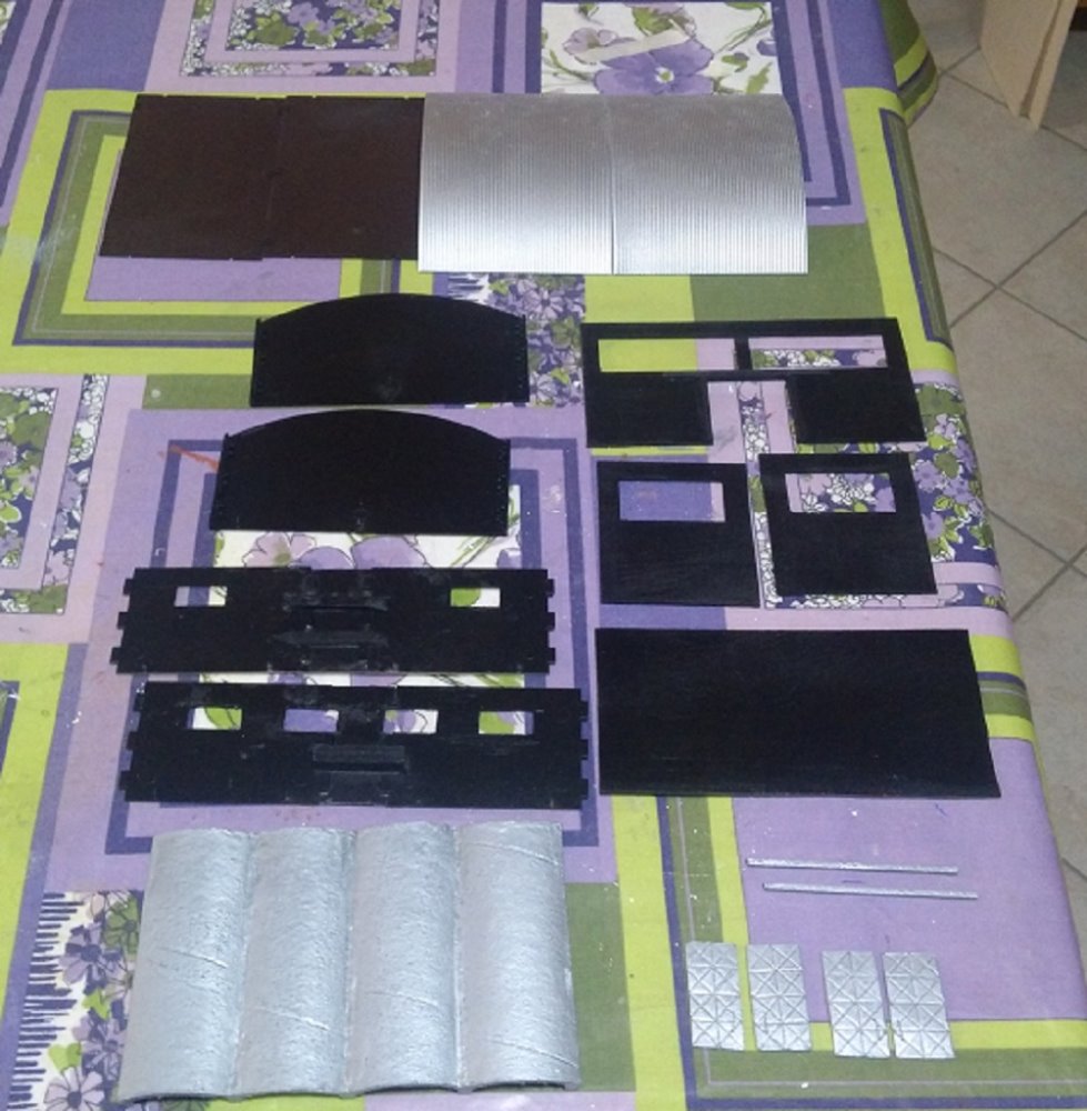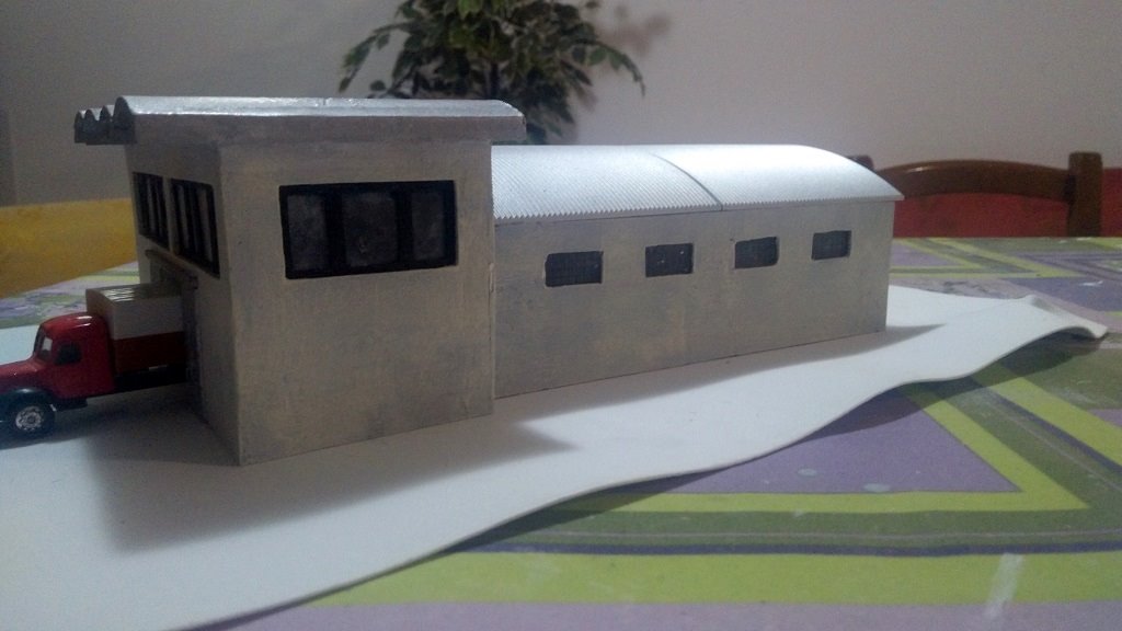 Ho dato una mano di nero opaco alle facce interne delle pareti in previsione di una futura illuminazione in modo che la luce non trasparra, mi manca la parte interna del tetto a volta in quanto da una rapida prova o notato che il grigio originale e poco coprente e la luce traspare, quindi darò il nero anche a quello, verniciato invece in alluminio il tetto autoscostruito, le porte e le guide delle stesse