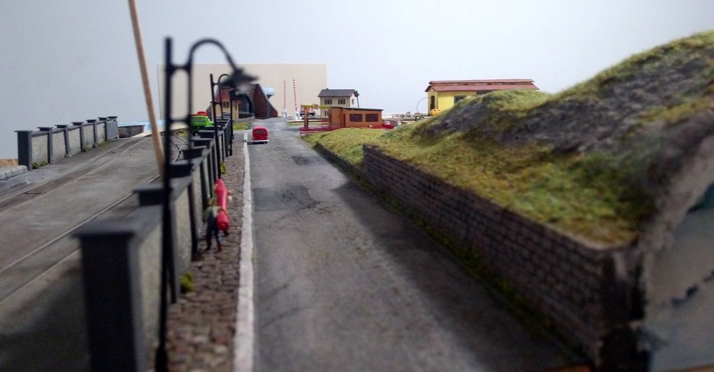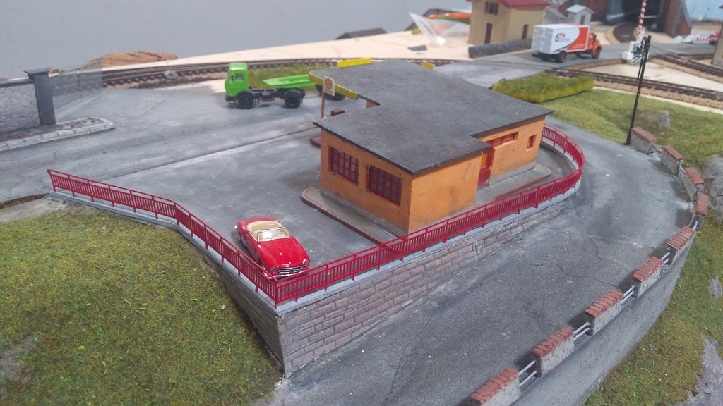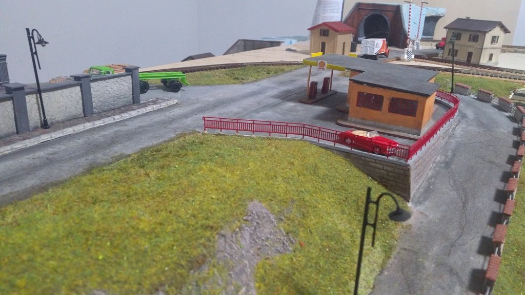 Ingegnere a parte la chiusura pessima del suo intervento ma gliela concedo(La vittoria dell'Inter tralasciando la papera colossale è comunque meritata) io e lei come le ho detto su WA siamo modellisticamente sulla solita lunghezza d'onda, infatti il giusto consiglio che mi ha dato è proprio l'ultimo lavoro che ho fatto insieme alla sistemazione della parte bassa del muretto lato strada togliendo quella antiestetica fossetta di 1/2 mm che si era creata, purtroppo avevo posizionato prima il muro e poi fatta la strada e il tutto non aveva combaciato bene, la strada è perfettamente parallela, mentre il muro tende leggermente ad allargare, con un po' di erbetta ho rimediato