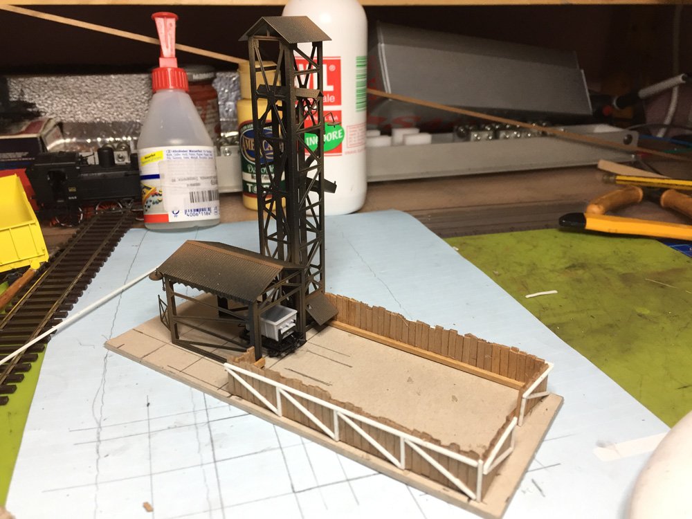 e poi ho messo insieme la carbonaia. Avevo già acquistato lo splendido sollevatore prodotto da Sagi in metallo fotoinciso e l'ho completato con il deposito carbone e la piccola decauville di caricamento: