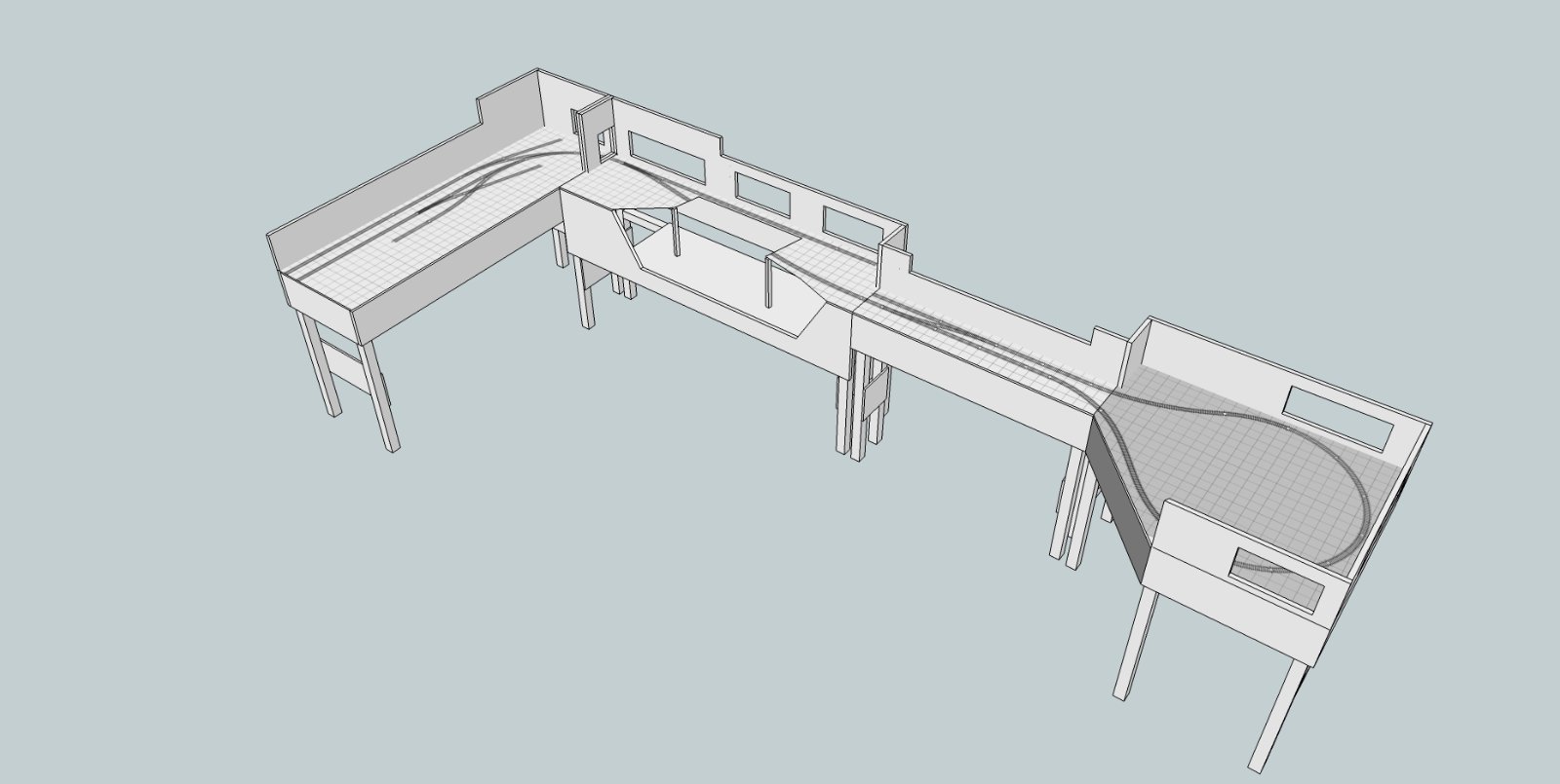 Come si evince dai prospetti verrà realizzato in forex e listelli di legno e dovrebbe trovare posto sopra la curva in uscita dal modulo stazione...
