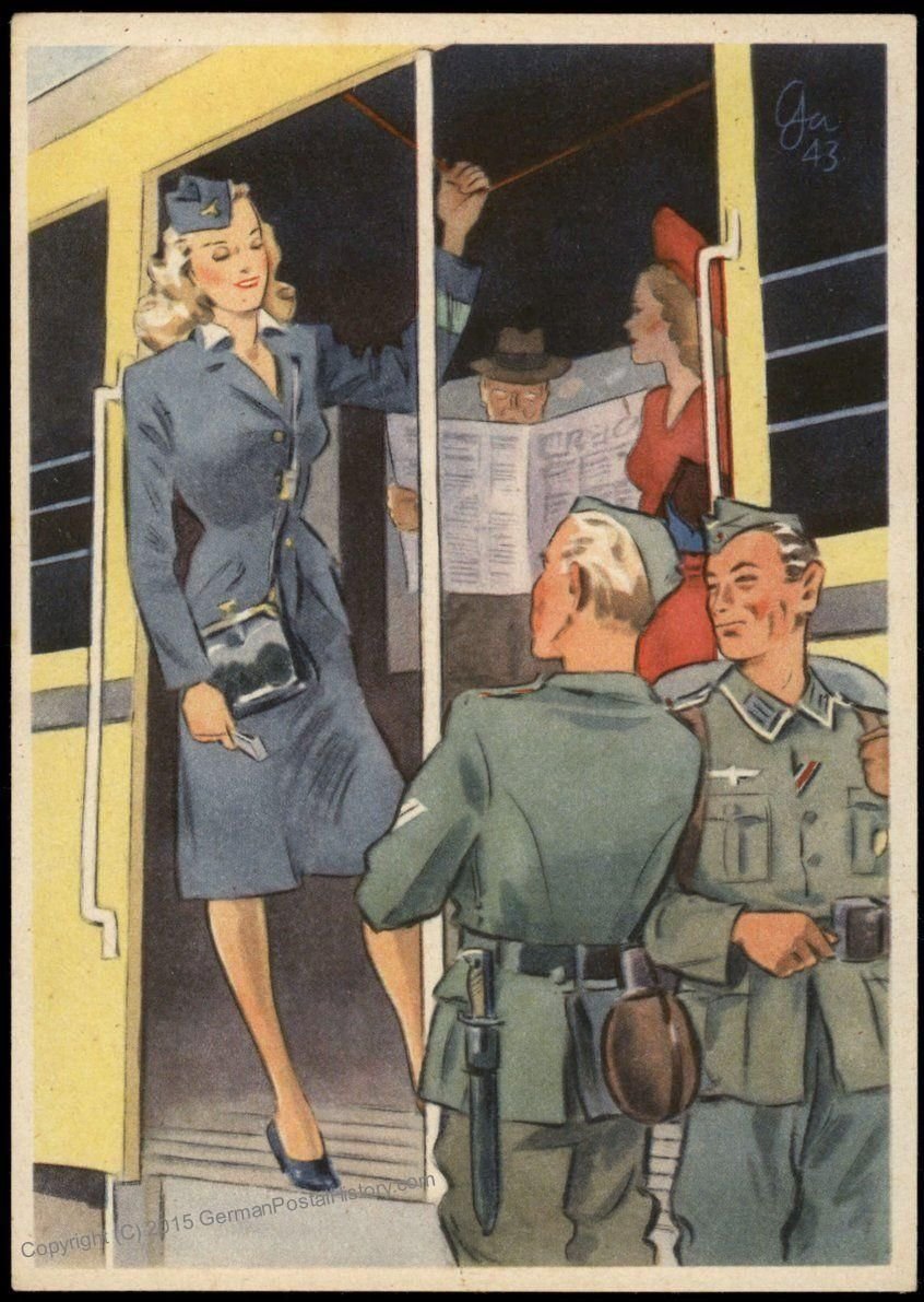 Per i figurini, invece, le cose si complicano.. alla fine ho accettato un minimo di compromesso, mettendo in evidenza i bottoni della divisa ed i fregi del berretto del personale maschile e lasciando così com'è quello femminile. E' proprio quest'ultimo ad essere "al limite". Se la divisa, come modello, è accettabile per una tarda epoca II (l'ultima foto allegata è di un cartellone propagandistico degli anni '40), la gonna, purtroppo, è visibilmente troppo corta (soprattutto perchè, dalle poche foto che sono riuscito a recuperare, mi pare fosse in uso il pantalone nero anche per le donne...) ... sistemando il figurino vicino al tavolo, una volta chiuso tutto, la cosa credo possa comunque passare in secondo piano....