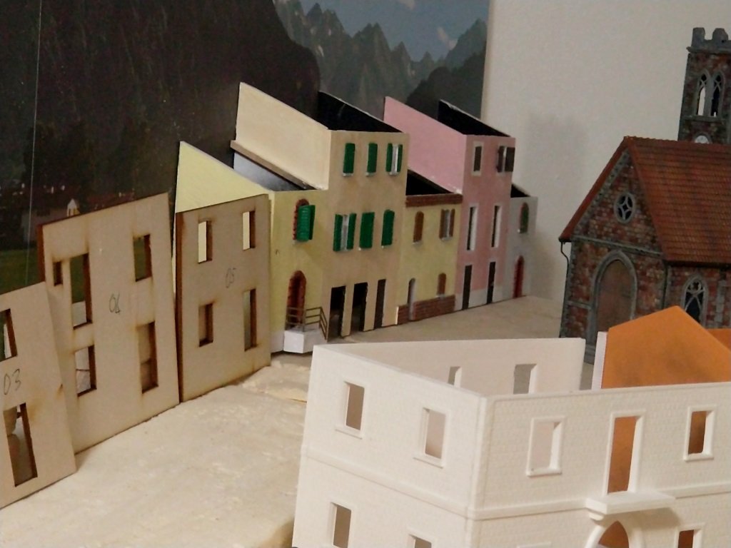 Io non compro parti di fabbricati da terzi, me li disegno e li faccio tagliare (e incidere) al laser in modo da avere il pezzo specifico per quella parte di fabbricato. Molte volte mi faccio tagliare il fabbricato intero.