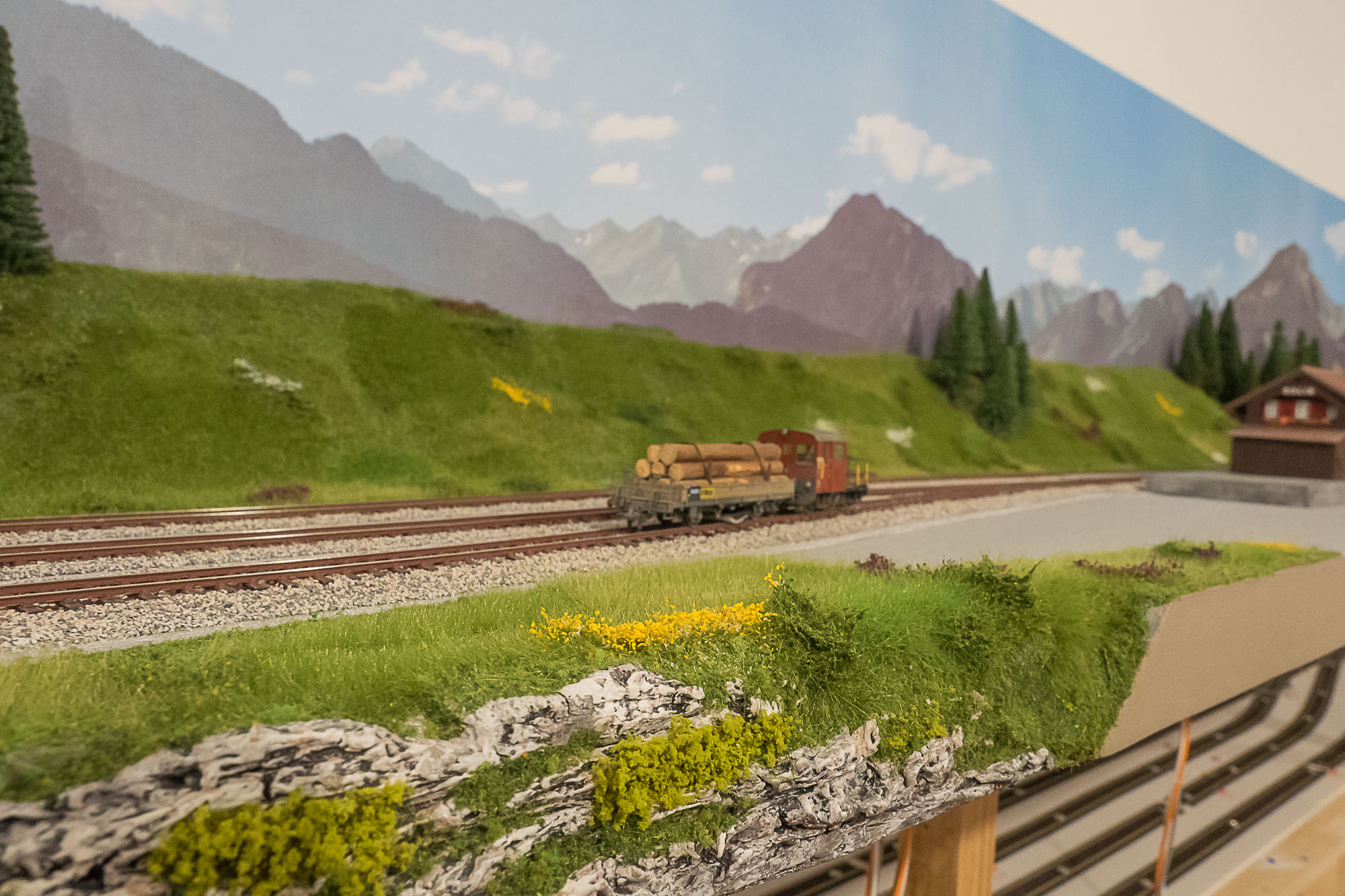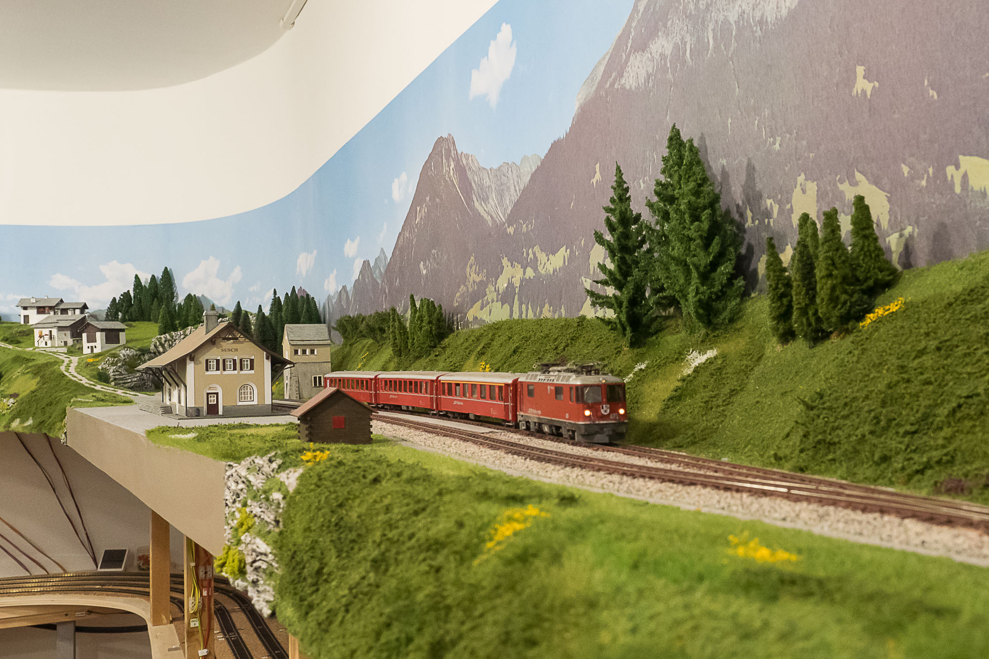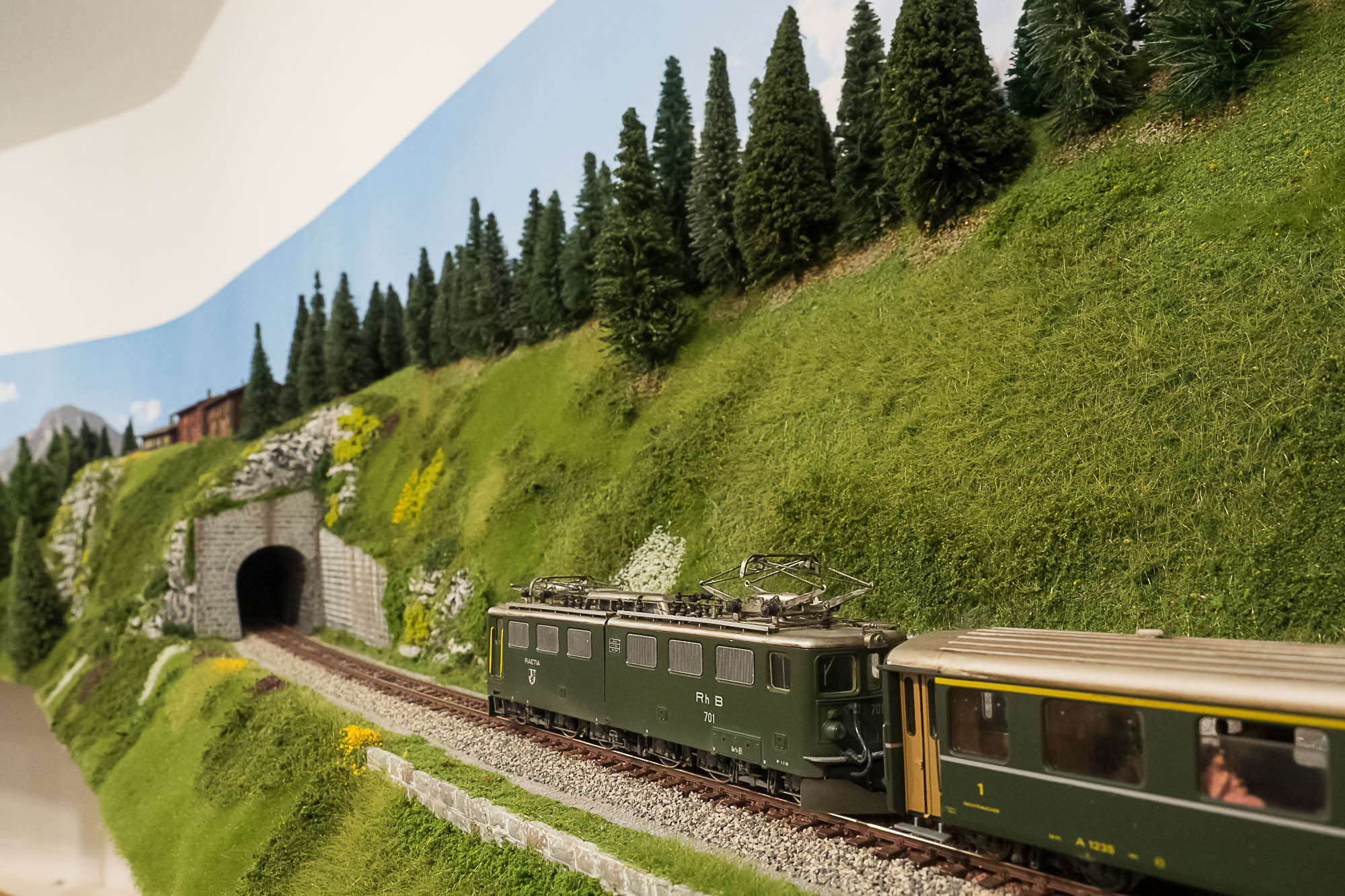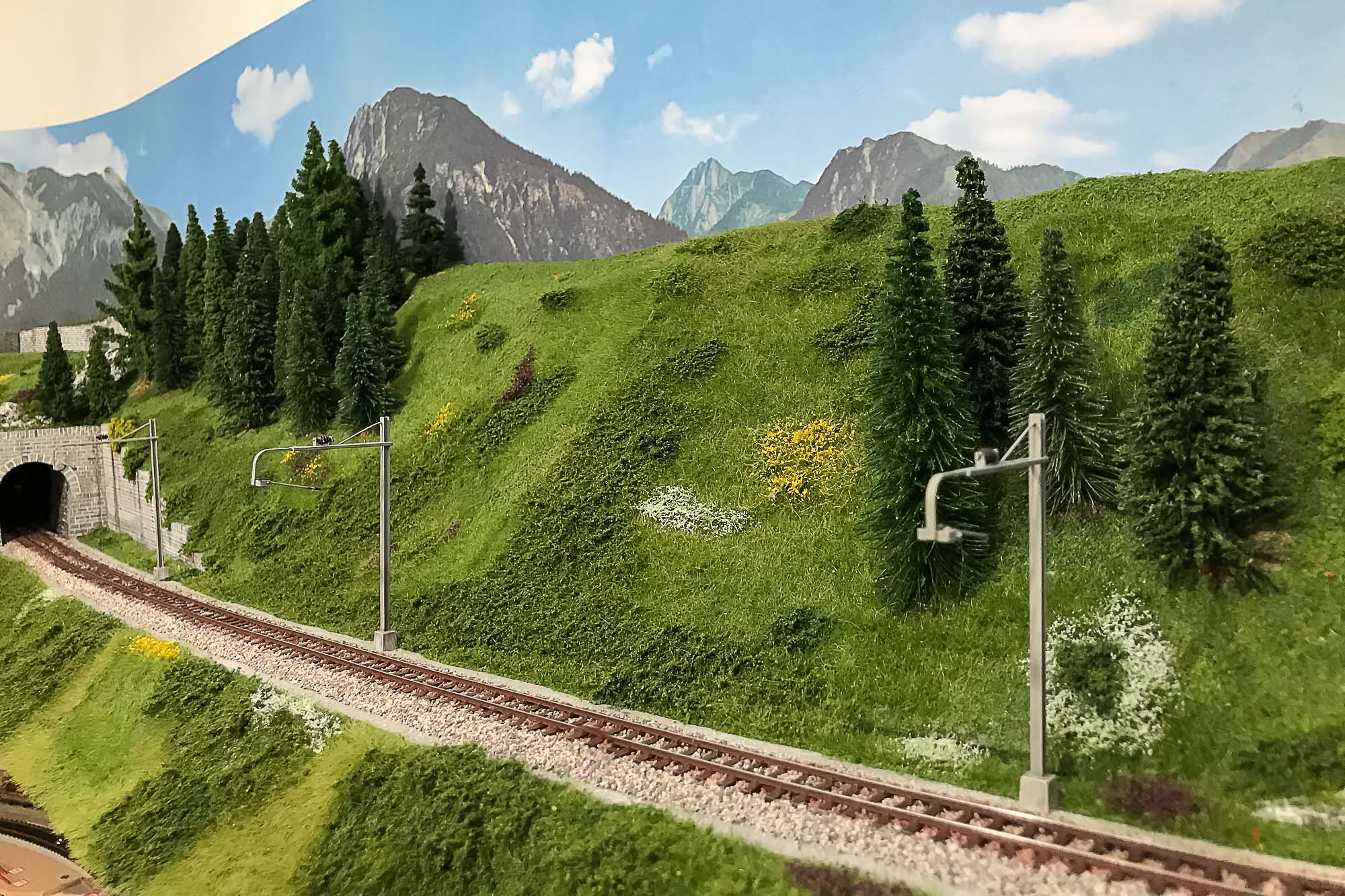 La posa della vegetazione della parte superiore del plastico, quella dedicata alle Ferrovie Retiche, è praticamente completata.