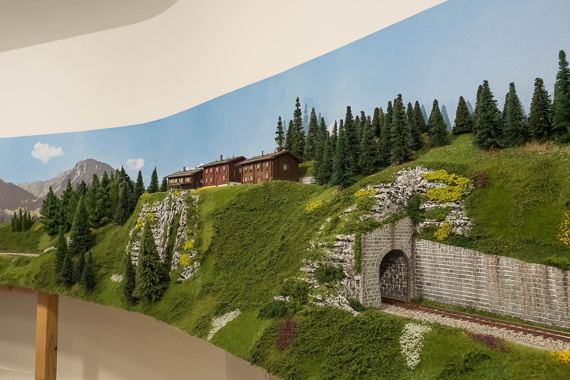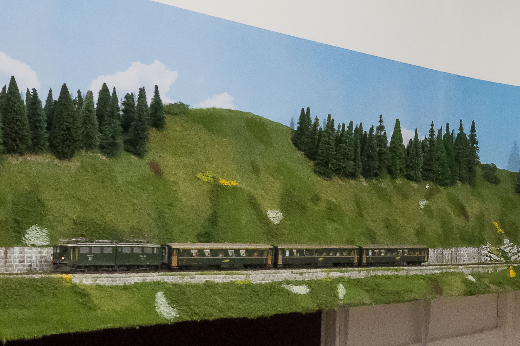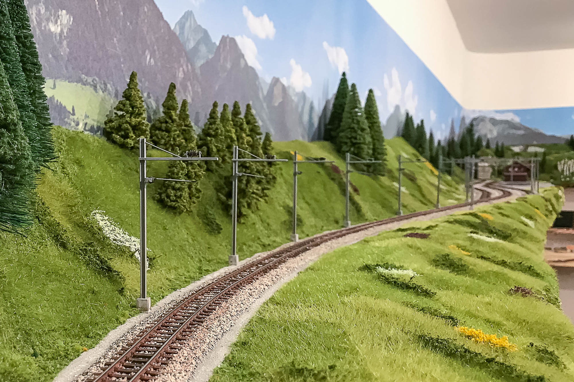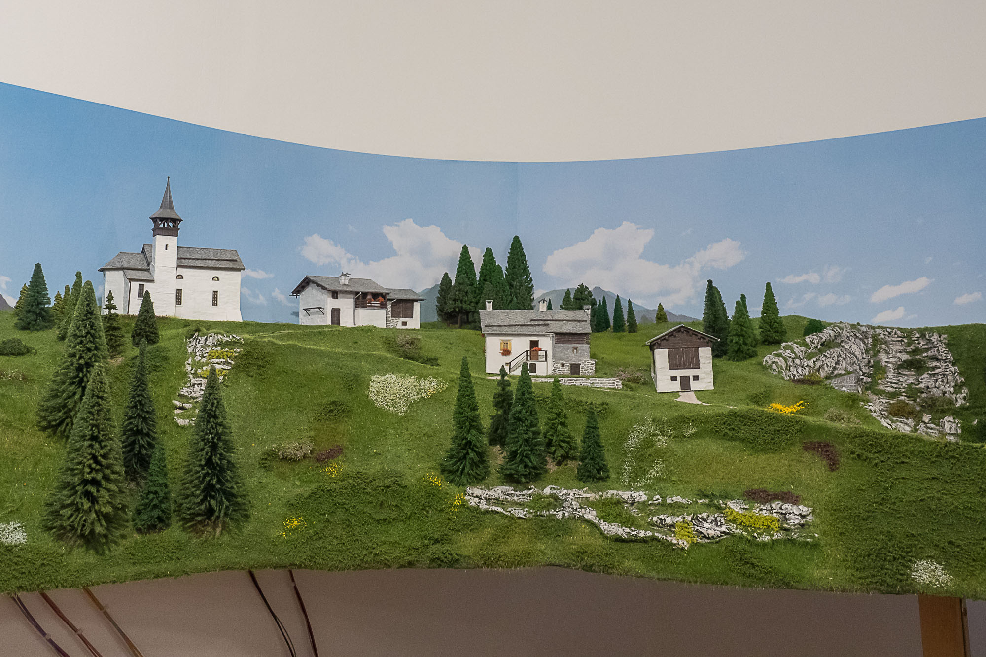 La posa della vegetazione della parte superiore del plastico, quella dedicata alle Ferrovie Retiche, è praticamente completata.