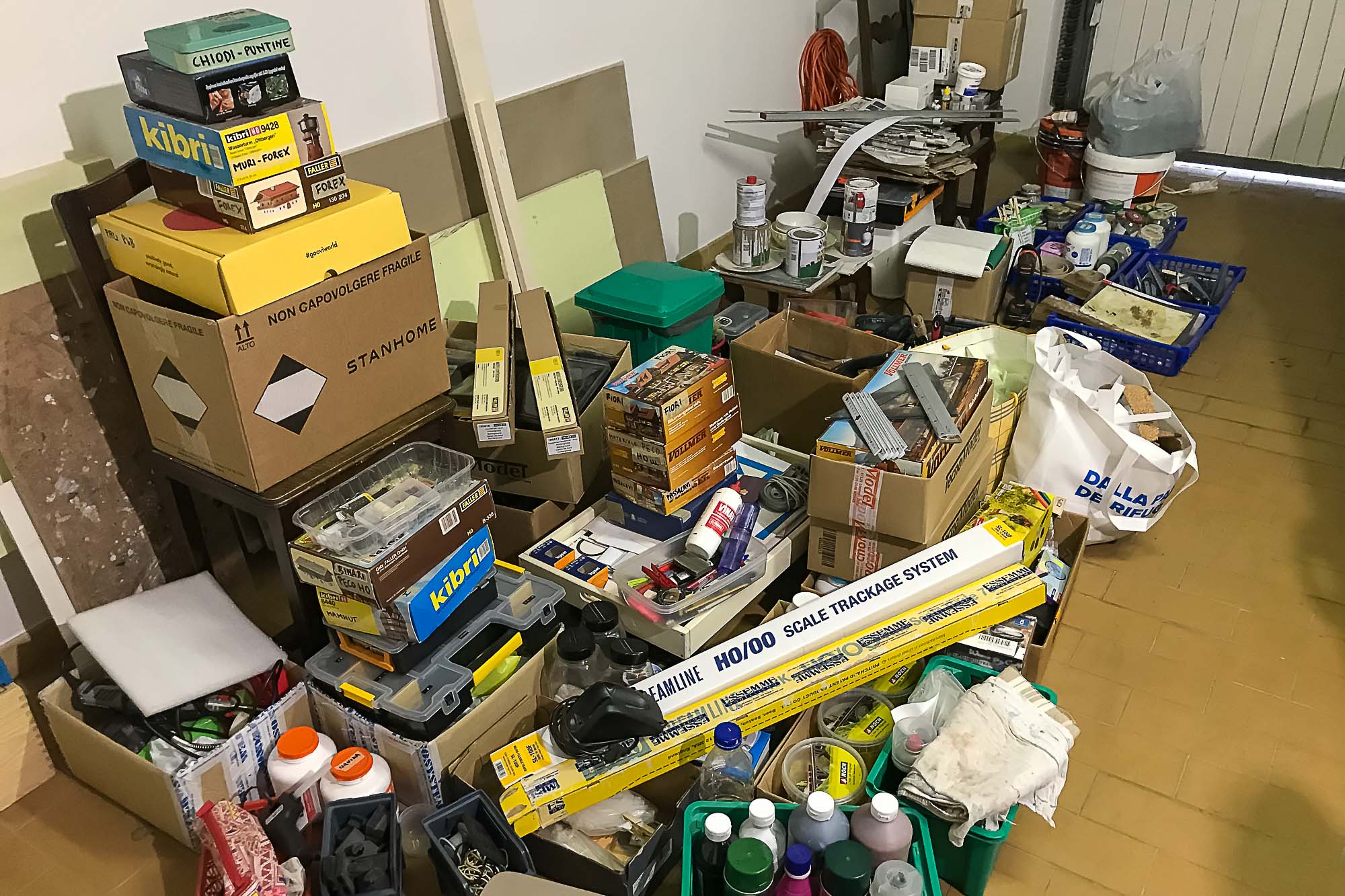 Visto che la posa della vegetazione ha inevitabilmente generato un bel pò di sporcizia, mi sono deciso a svuotare completamente la stanza del plastico.